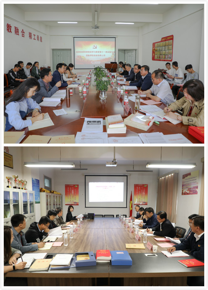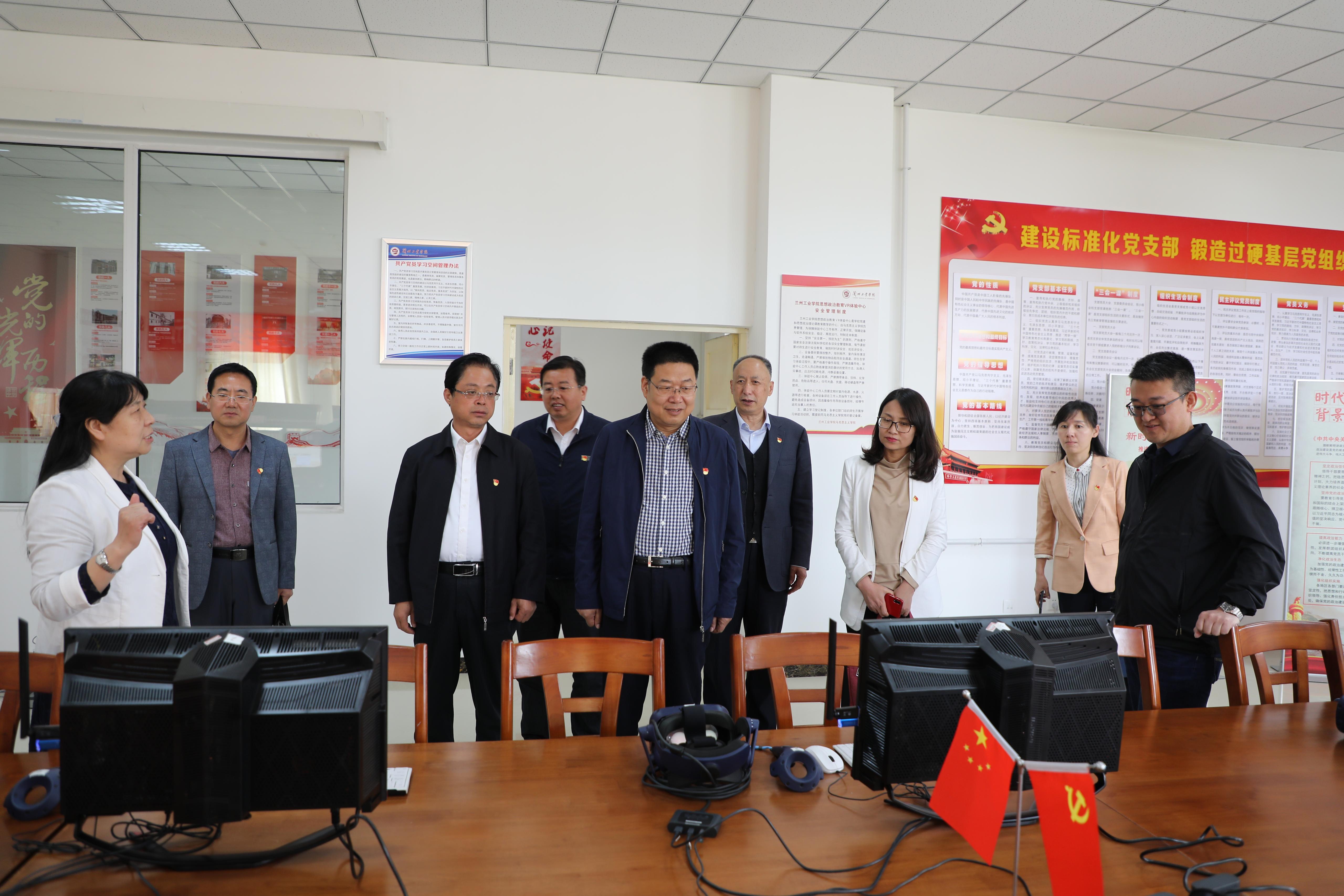 会前,丁虎生一行先后深入电气工程学院和材料工程学院,通过听取汇报、查阅资料、与师生座谈,详细了解学校基层党委党史学习教育开展情况,并前往思想政治教育VR体验中心参观体验,听取大学生理论宣讲员宣讲“四史”。