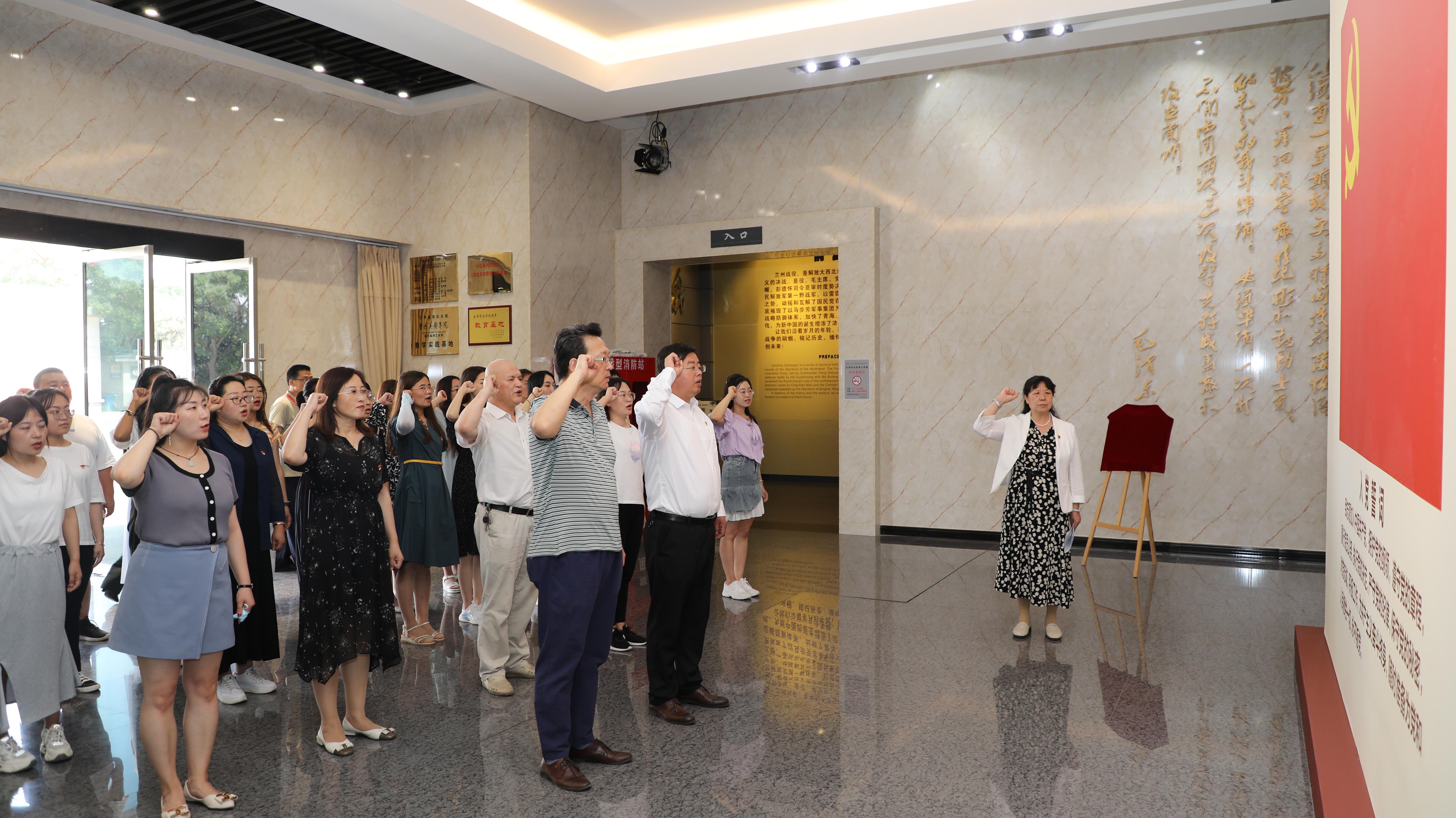 签约仪式前,马克思主义学院师生党员在人民英雄纪念碑前凭吊革命先烈,参观兰州战役纪念馆并重温入党誓词。在讲解员深情讲解中,全体党员被兰州战役的革命史料深深打动,全程学习沉浸在奏响西进序曲、实施千里追击、浴血南山之巅、聚歼青马主力、欢庆西北解放的动人故事中。