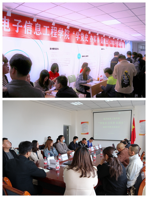 2021年4月20日下午,电子信息工程学院在科技楼5楼举办“学党史 办实事 促就业”专场招聘会。学院2021届未就业毕业生、2018级全体学生参加招聘会。