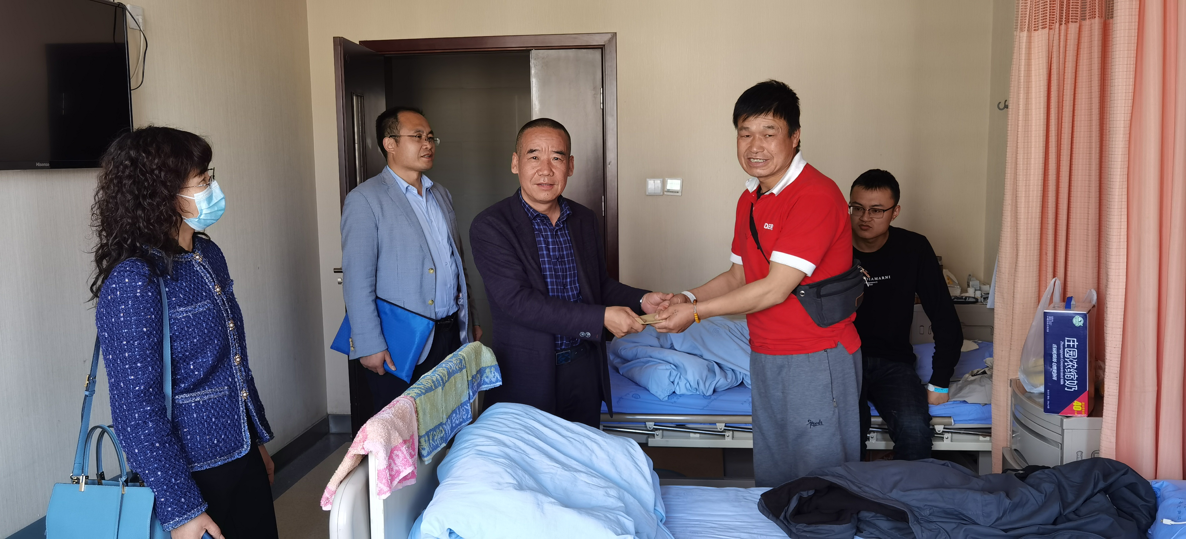 4月16日下午,学院领导李双科、王重贤、张维玲,以及辅导员到甘肃省中医院,看望了生病住院的学生,送上慰问金,表达了学校领导及学院师生的亲切问候,鼓励该同学增强战胜疾病的信心和勇气,坚强乐观地面对困难,安心养病,积极配合治疗,争取早日康复,返校学习。