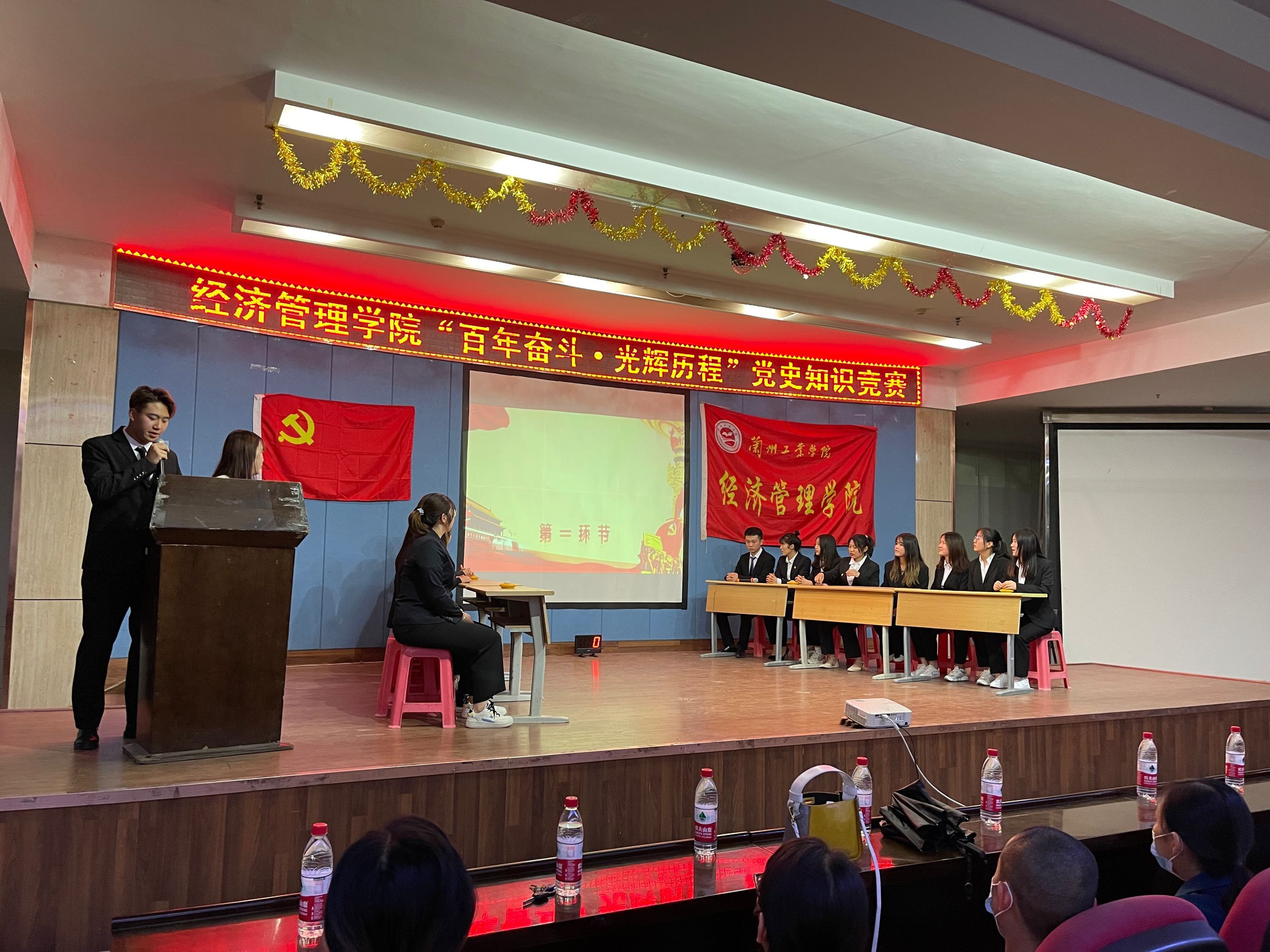 6月24日晚,经济管理学院在八楼会议中心举行“百年奋斗·光辉历程”党史知识竞赛决赛。学院党委书记王春升、院长戴徳锋、党委副书记牛永红以及各学生支部书记、全体学生党员、入党积极分子观摩了本次比赛。