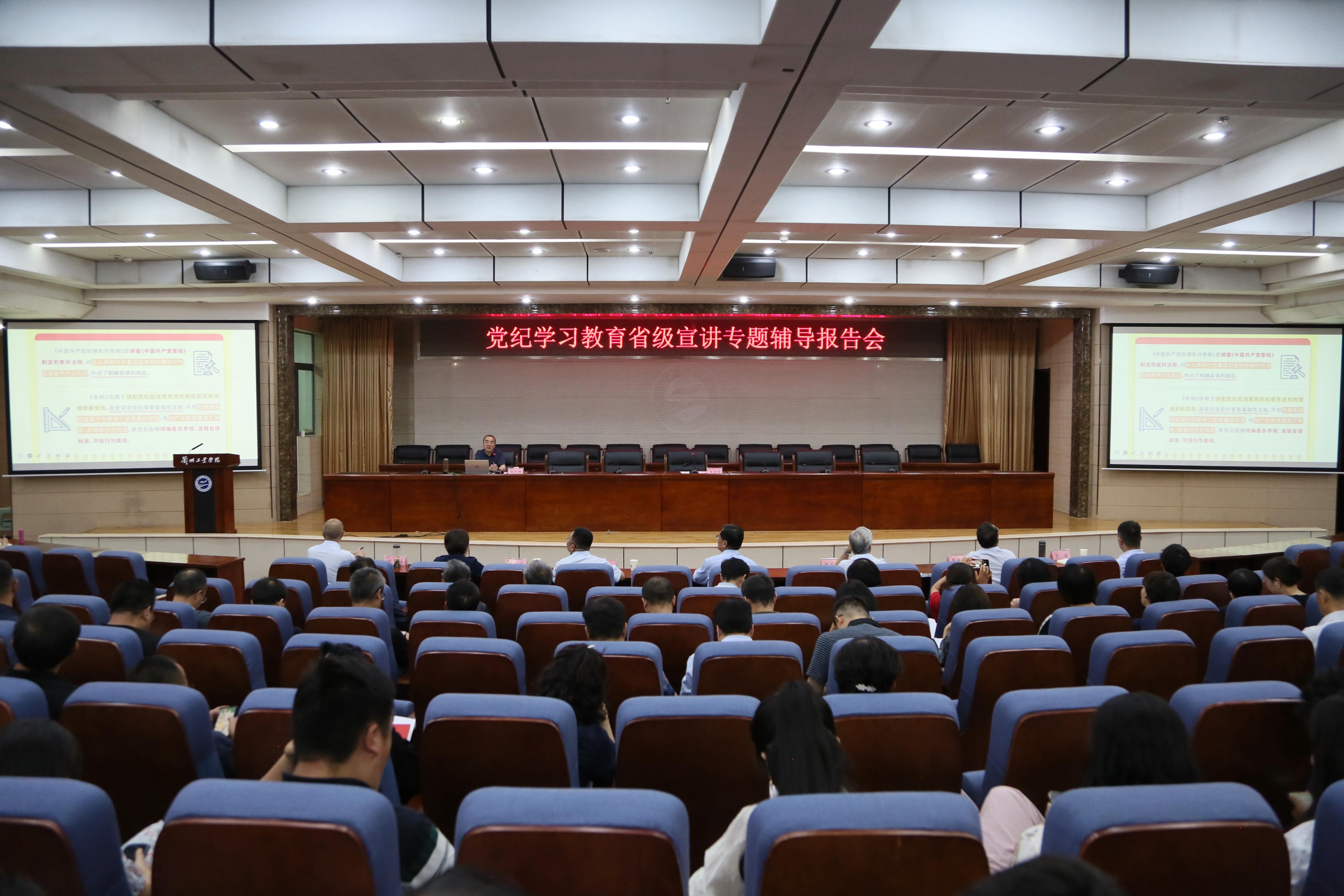 5月28日,学校在第三学术报告厅举办党纪学习教育省级宣讲专题辅导报告会。省党纪学习教育宣讲团成员、甘肃省纪委监委第八监督检查室主任陈中伟应邀作专题报告。党委书记韦尧兵主持报告会并讲话,党委副书记、校长刘新辉,党委副书记黄荟铭,纪委书记、监察专员常正霞,副校长贾杰华、罗均华,党委委员、组织部部长贾魁出席报告会。