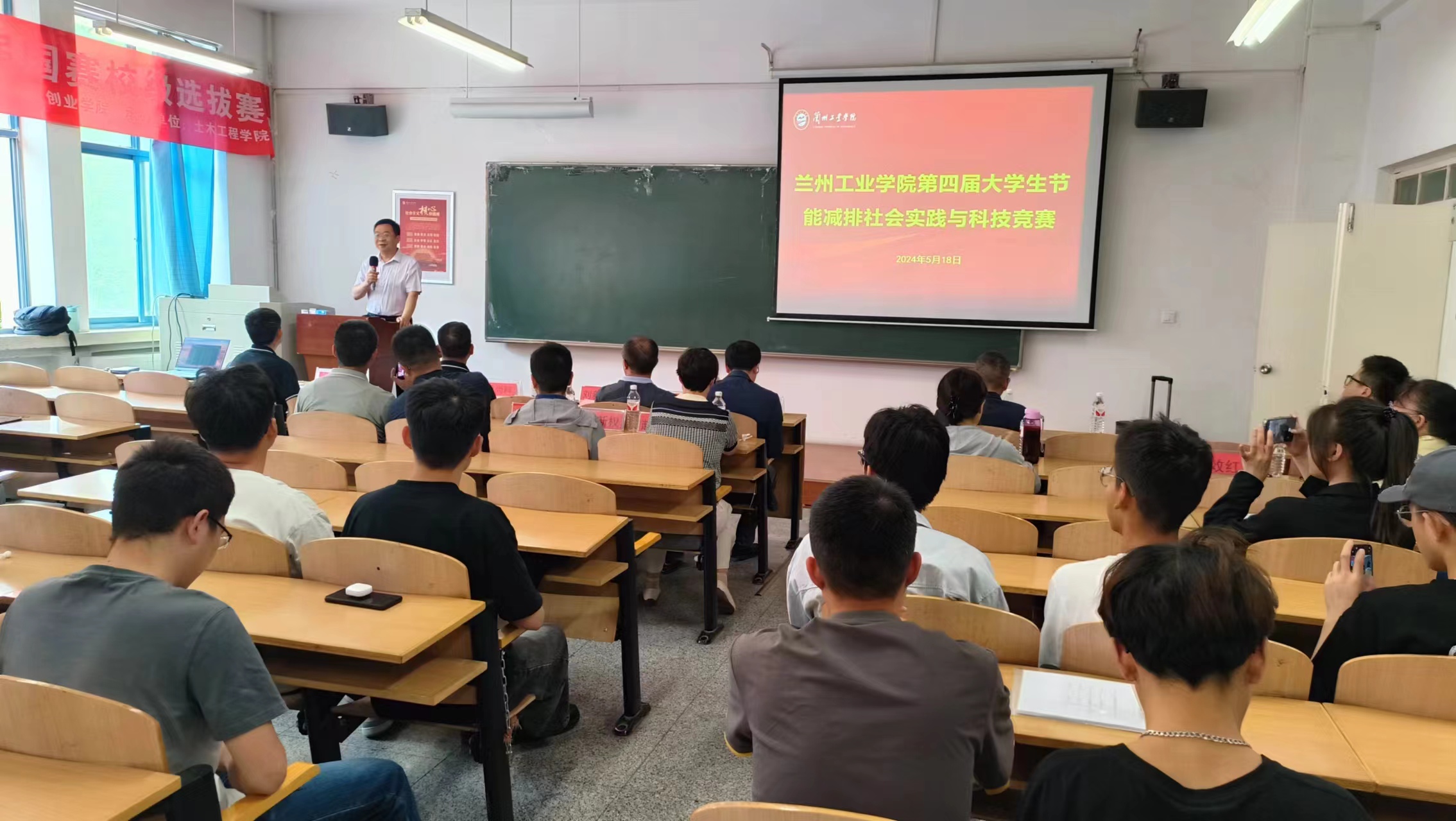 5月18日,由教务处、创新创业学院主办,土木工程学院承办的第四届大学生节能减排社会实践与科技竞赛暨第十七届国赛选拔赛在第四教学楼举行,党委副书记、校长刘新辉出席比赛并现场指导。