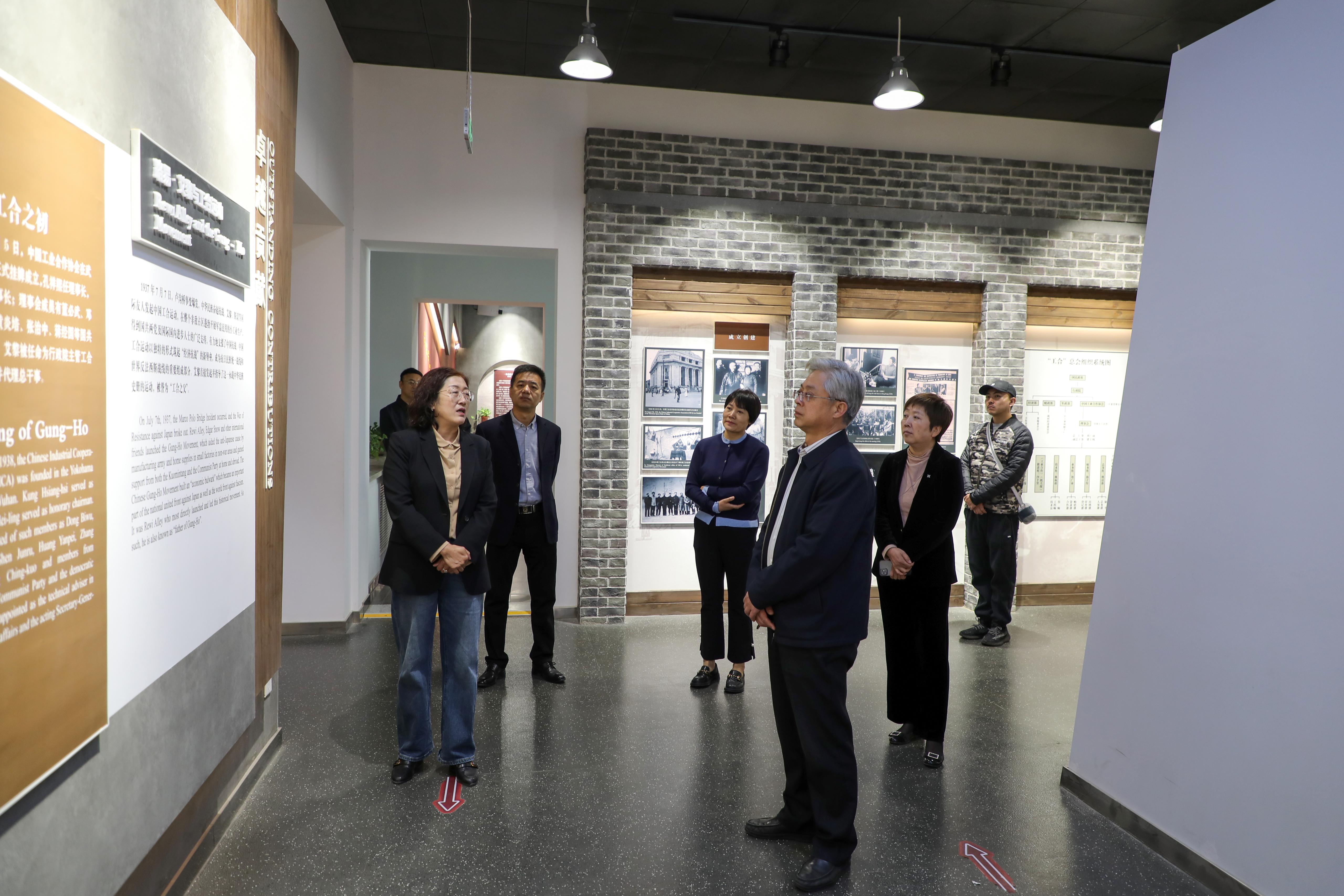 黄荟铭一行深入兰州城市学院培黎展览馆,详细了解了路易·艾黎光辉而伟大的人生以及创办培黎工艺学校的光辉历程,深刻感悟了热爱和平、追求正义的国际主义精神、“努力干、一起干”的工合精神、“手脑并用、创造分析”的教育实践精神和心系人民、无私奉献的博爱精神。