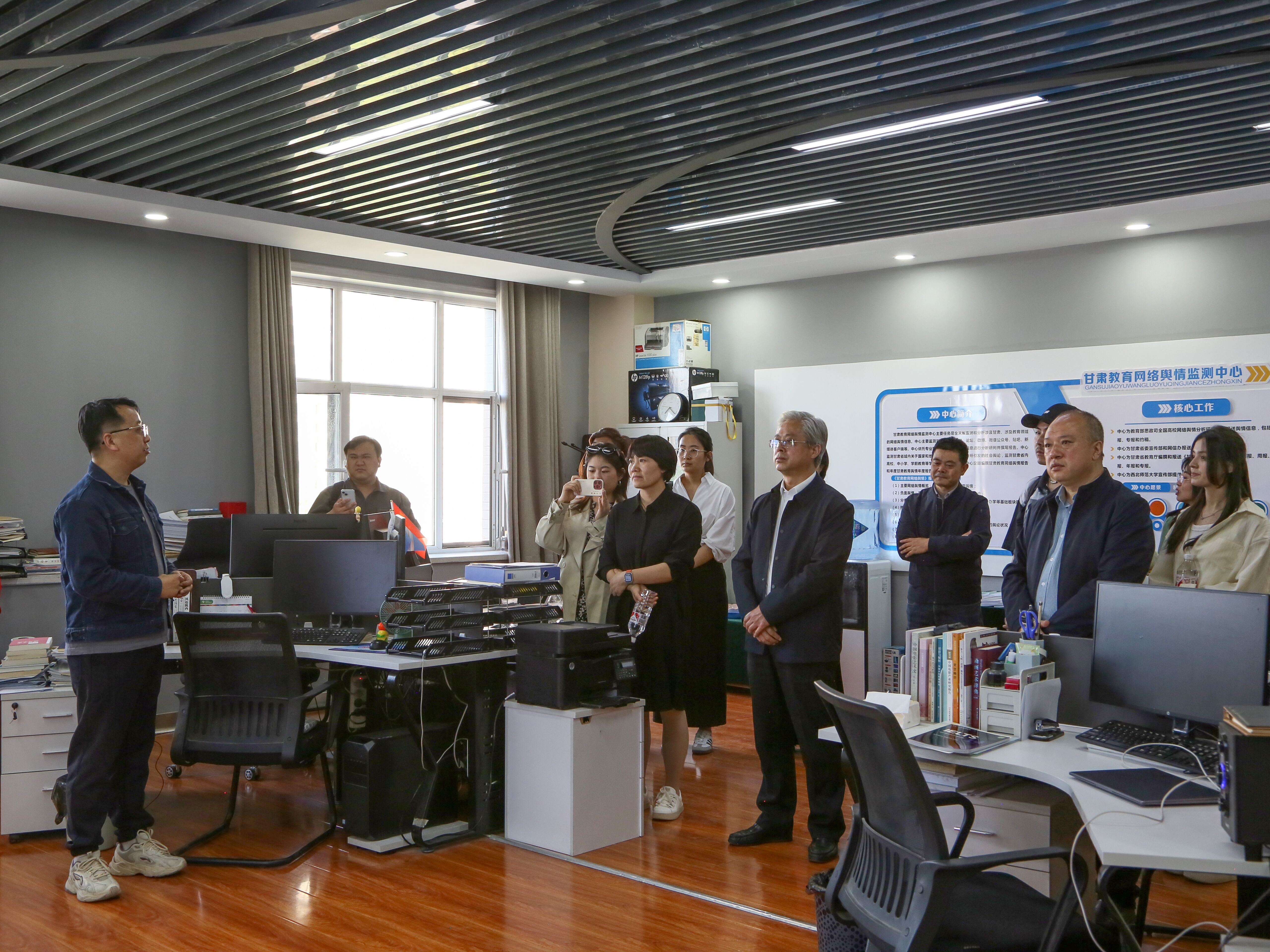 随后,黄荟铭一行在西北师范大学党委宣传部常务副部长雷鸣和相关部门负责人的陪同下,依次参观了校史馆、博物馆、文科实训楼信息展示大厅、甘肃教育网络舆情监测中心、融媒体中心等地,详细了解了西北师范大学在校园文化建设、思想政治教育、校史馆建设、舆情信息管理、融媒体建设等方面情况。