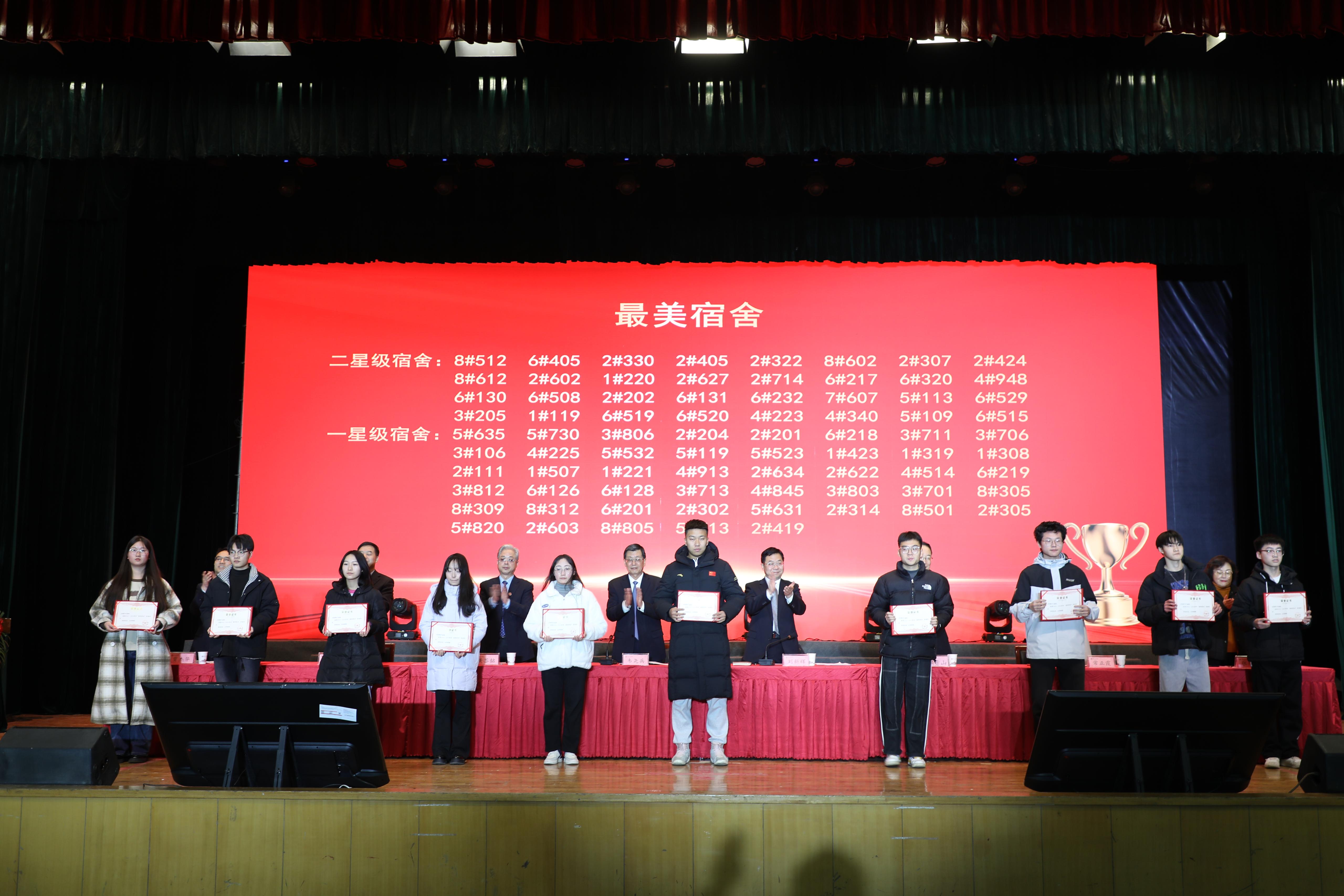 韦尧兵向受到表彰的先进集体和先进个人表示祝贺,向辛勤耕耘在学生工作一线的全体教师和学生骨干表示衷心感谢。他指出,2023年学校坚持以习近平新时代中国特色社会主义思想为指导,认真开展主题教育和“三抓三促”行动,践行为党育人、为国育才的初心使命,因事而化、因时而进、因势而新,积极探索新时代学生教育管理和服务育人的新模式与新机制,学生教育管理工作取得明显成效。他强调,2024年,学校将积极构建“三全育人”新格局,深入推进“一站式”学生社区建设。广大学生工作者要立足本职工作,不断深化学风建设,切实加强学风培育与治理,以优良的学风助力本科教育教学审核评估和硕士学位授权单位立项建设。广大青年要挺膺担当,争做新时代的奋斗者;珍惜韶华,争做练就强国本领的勤学者;修身立德,争做心怀感恩的奉献者,将个人奋斗与国家发展紧密相连,把深厚的爱国之情和坚定的报国之志化为切实的效国之行,用矢志奋斗谱写新时代的青春之歌。