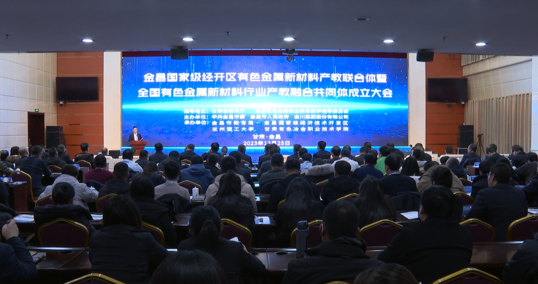 12月25日,金昌国家级经开区有色金属新材料产教联合体暨全国有色金属新材料行业产教融合共同体成立大会在金昌市行政中心召开。金川集团公司总经理、党委副书记李尚勇,兰州理工大学党委常委、副校长王全进,中国机械总院集团哈尔滨焊接研究所有限公司副总经理吕晓春,武汉华中数控股份有限公司总裁助理、教育事业部总经理周理,省教育厅职业教育与成人教育处、有色金属工业人才中心教育培训处相关负责人出席会议。我校副校长马宏锋应邀出席大会,材料工程学院负责人参加会议。