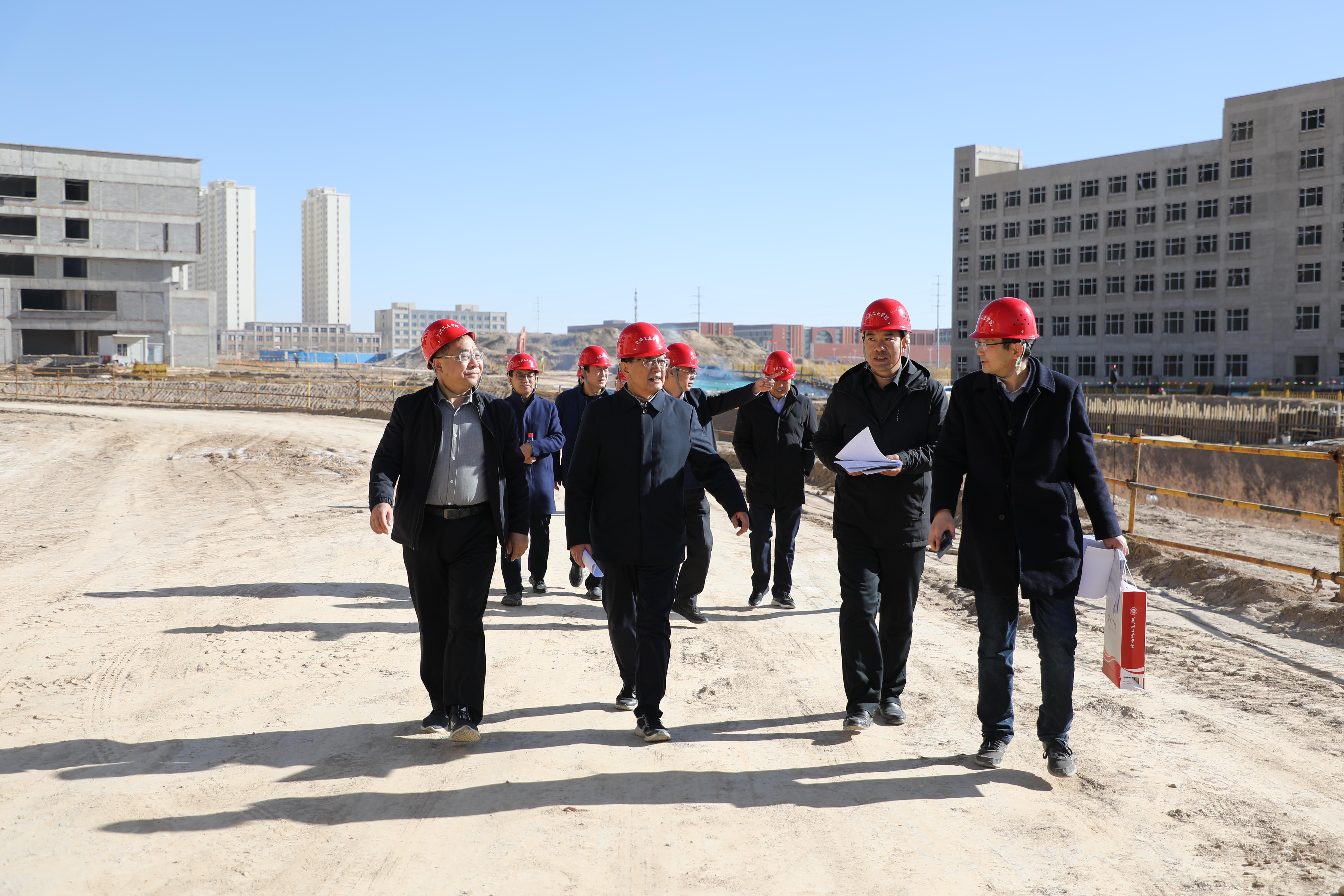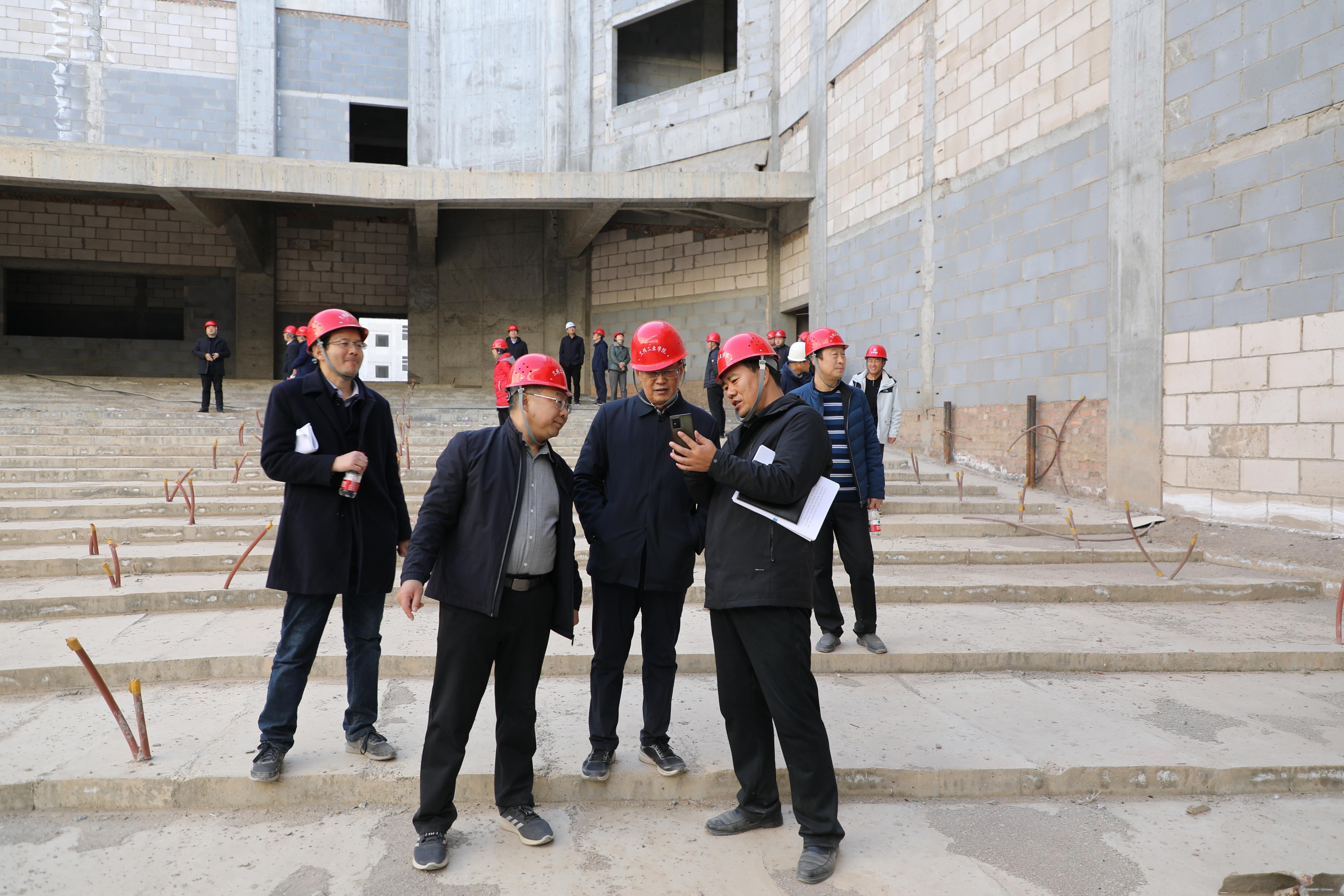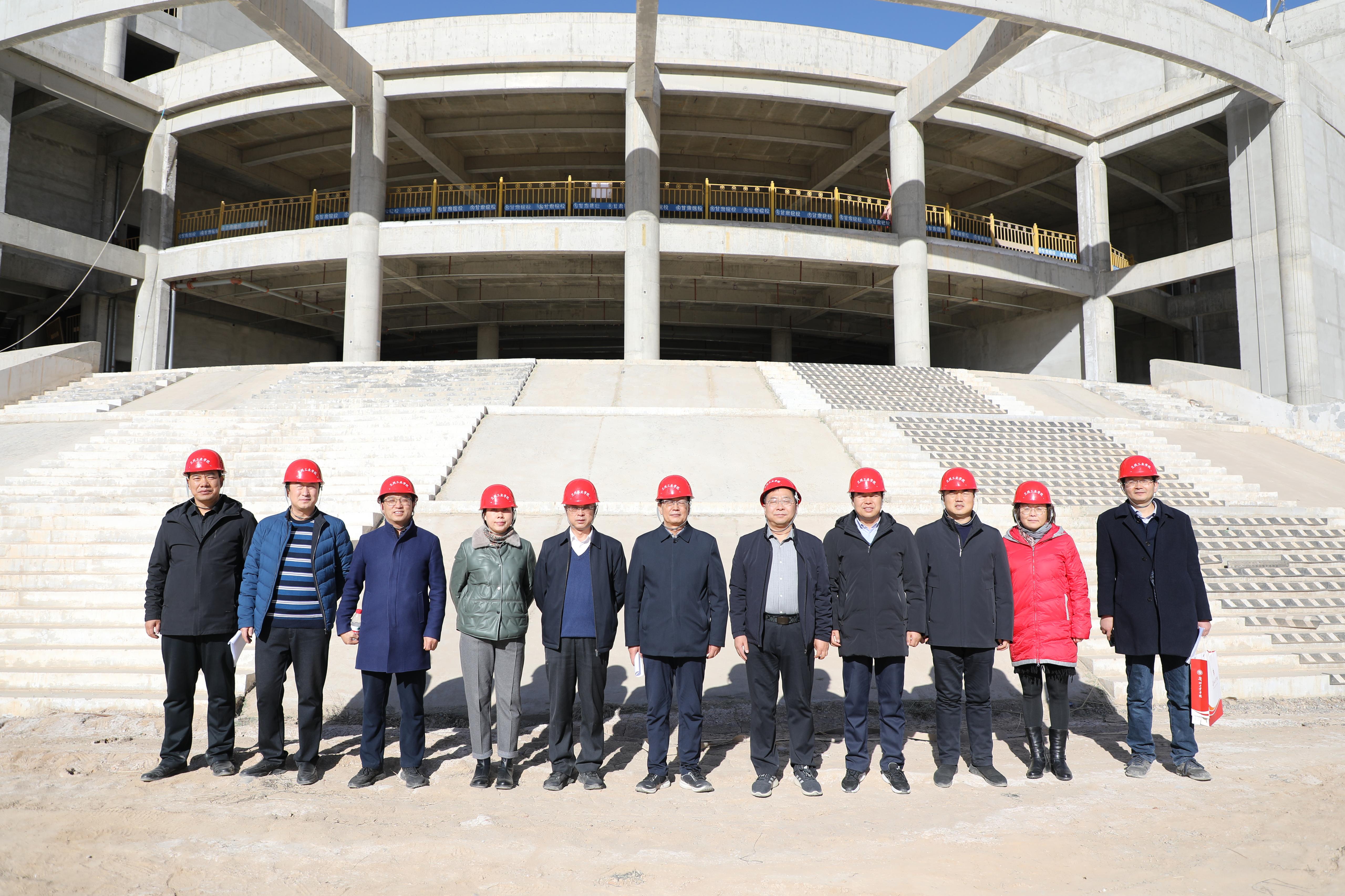 12月7日,党委书记韦尧兵、校长刘新辉带领学校全体党政班子成员来到新校区施工现场,实地踏勘工程建设进展情况。