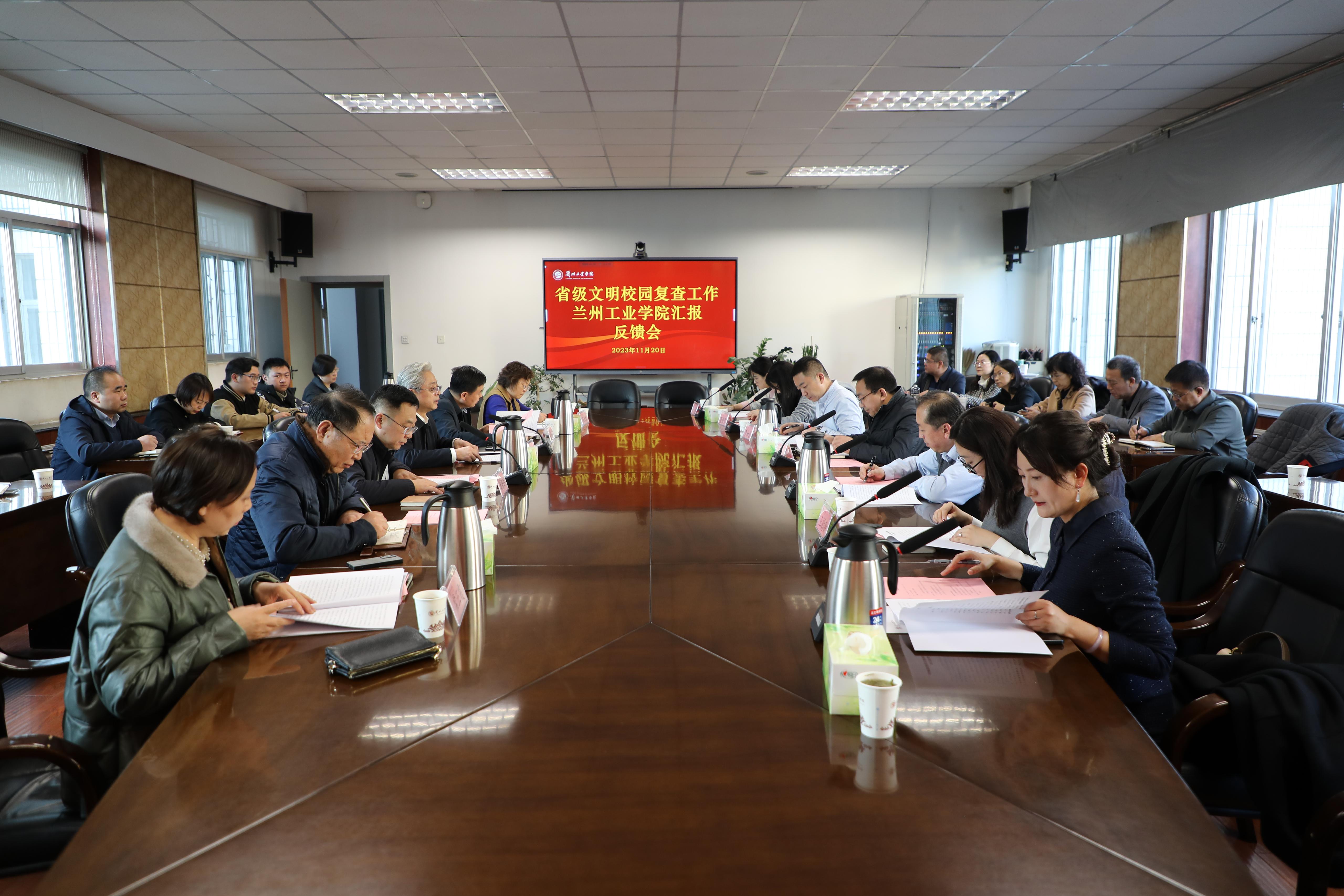 根据省文明办、省教育厅关于组织开展省级文明校园建设复查工作的安排,11月20日,省教育厅思政处副处长赵军权,省文明办三处副处长、三级调研员刘太向一行7人来校对学校省级文明校园建设工作开展实地复查。学校党委副书记黄荟铭主持会议。全体在家校领导,党委各职能部门主要负责人,各二级学院党委(党总支)书记,工会、团委负责人,以及教师和学生代表参加会议。