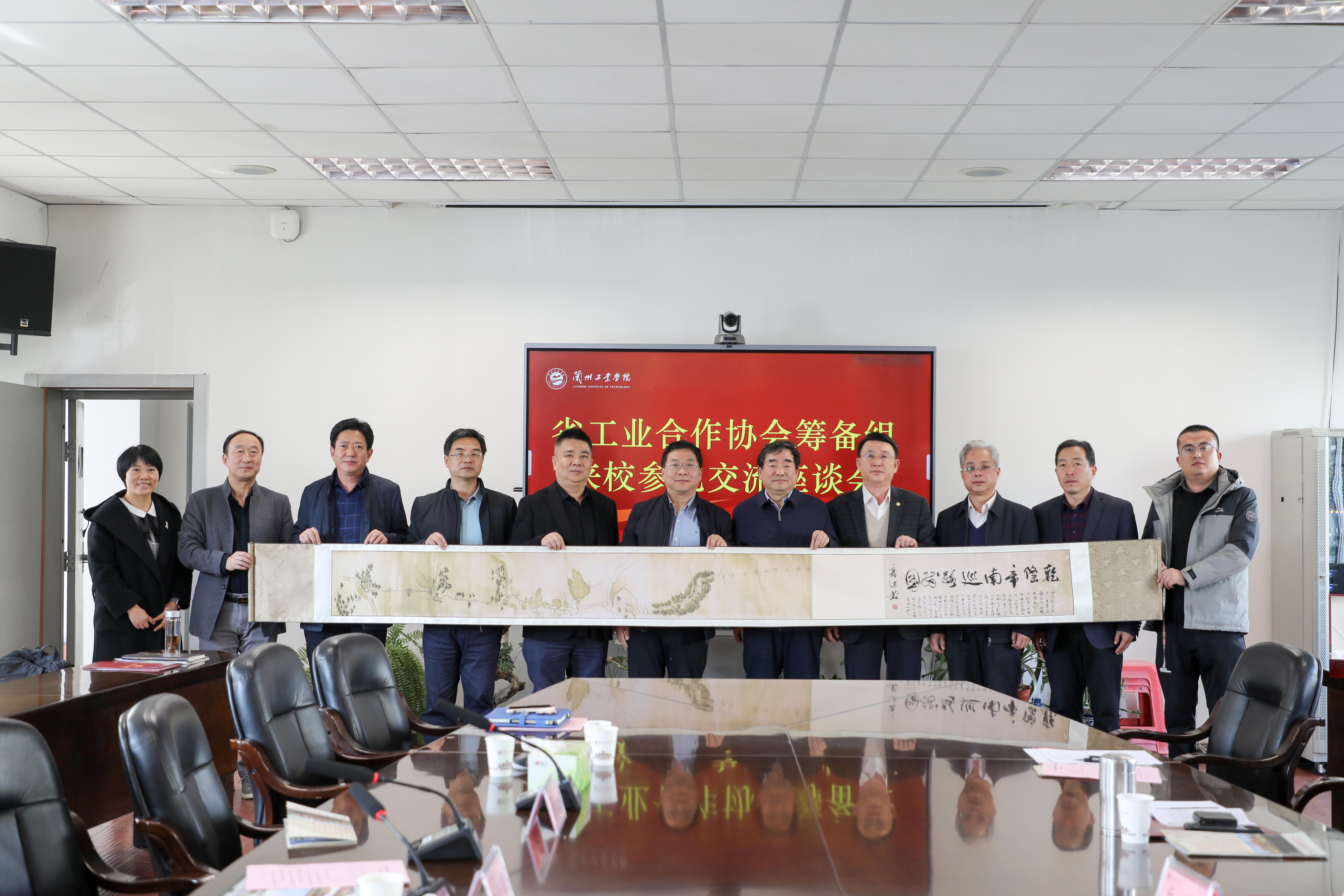 省工业合作协会筹备组有关人员参加座谈并一同调研。学校办公室、宣传部、国际合作交流处、校工会、校团委、校友办负责人参加座谈。