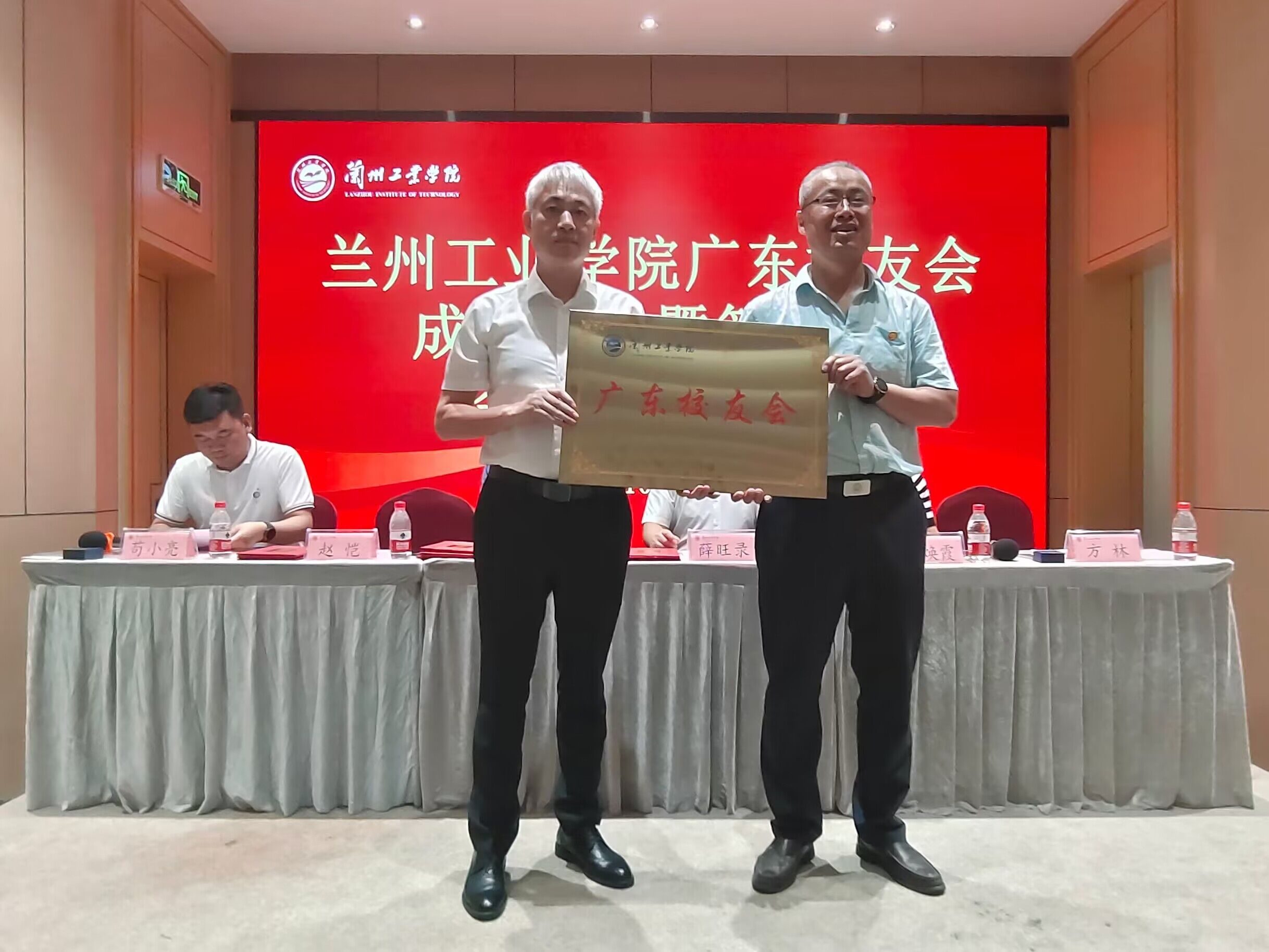 张焕霞宣读了《甘肃省兰州工业学院校友会关于同意设立兰州工业学院广东校友会的批复》;薛旺录、赵恺分别为广东校友会授会旗、会牌;与会领导为当选的理事会成员颁发了聘书。