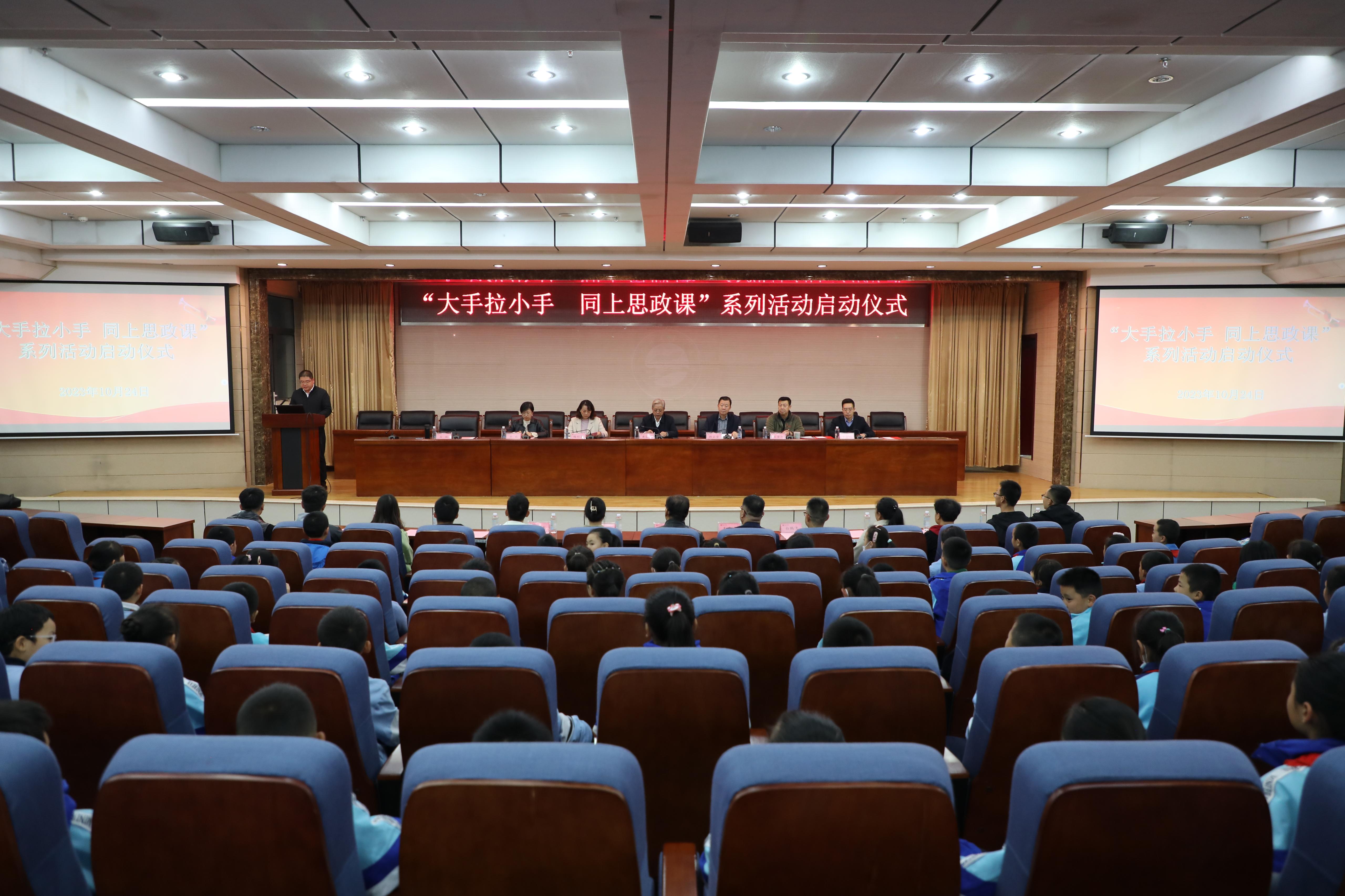 10月24日,“大手拉小手 同上思政课 ”系列活动启动仪式在我校第三学术报告厅举办。校党委副书记黄荟铭,兰州市第八十六中学校长韩正荣、党支部书记苏贵平、副校长高占斌、田海龙,龚家湾街道办事处党工委副书记魏彩英,龚家坪东路社区党委书记魏素蓉出席仪式。