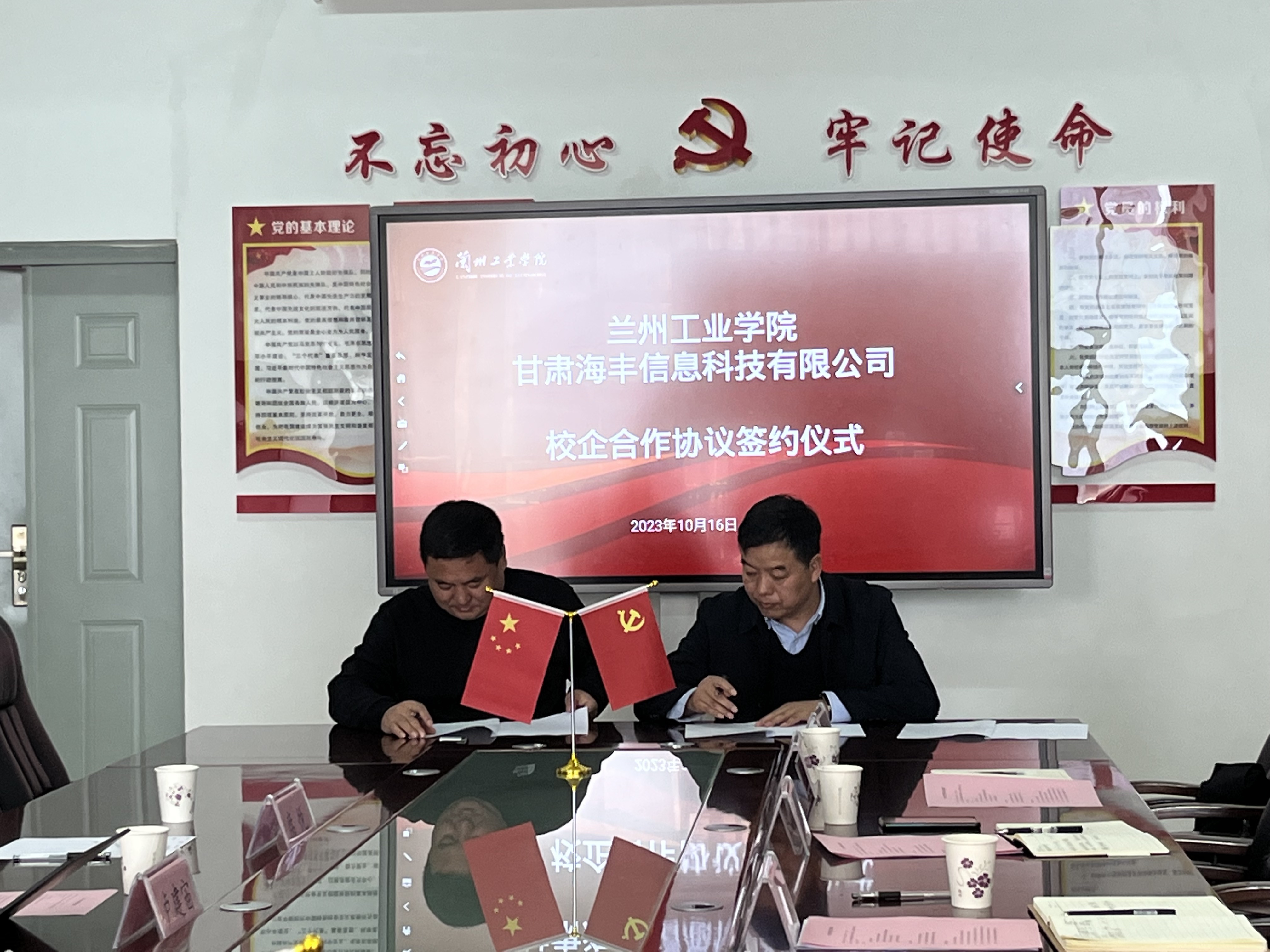 10月16日,学校与甘肃海丰信息科技有限公司举行校企合作签约仪式。甘肃海丰信息科技有限公司集团总裁卢建宙、学校副校长王佰成出席仪式。