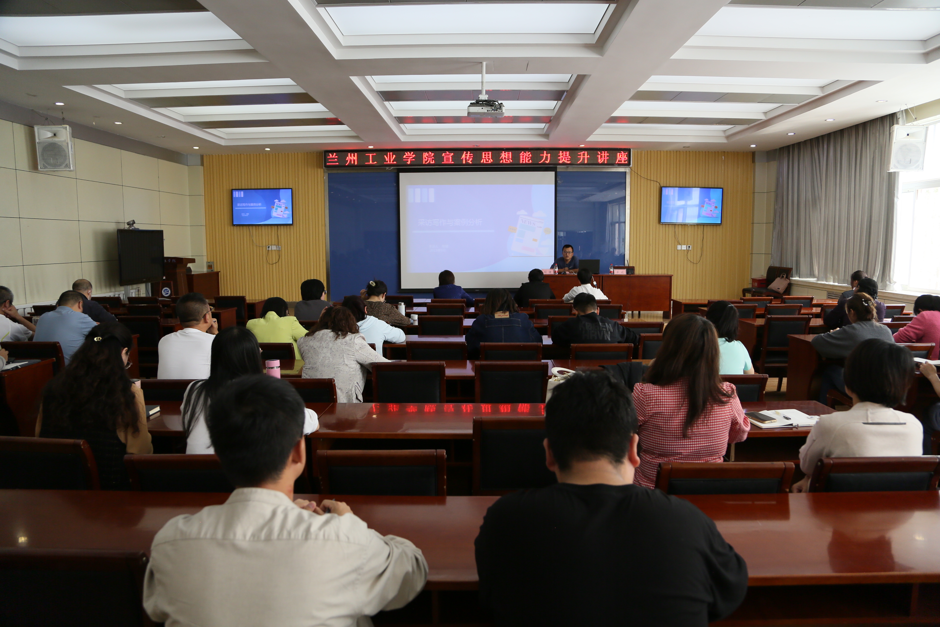9月19日下午,中国甘肃网采访部部长程健应邀来校作题为《采访写作与案例分析》的专题辅导讲座。 讲座中,程健结合自己12年一线新闻采访工作经验,围绕基本概念、新闻采访、新闻写作、提前准备采访报道四个方面深入阐述了新闻采写工作方法与技巧。他认为,宣传思想工作是意识形态工作的重要组成部分。新形势下做好宣传工作要坚持“内容为王”的原则,把稳新闻稿件和宣传材料的政治关和质量关,为学校内涵式高质量发展营造良好的舆论氛围,进一步提升学校社会影响力。 各基层党组织书记、副书记,各单位、各部门负责人,以及各基层党组织和各单位、各部门新闻撰写人员参加专题培训。 来源:党委宣传部 撰稿、摄影:刘紫豪 审稿:辛欢