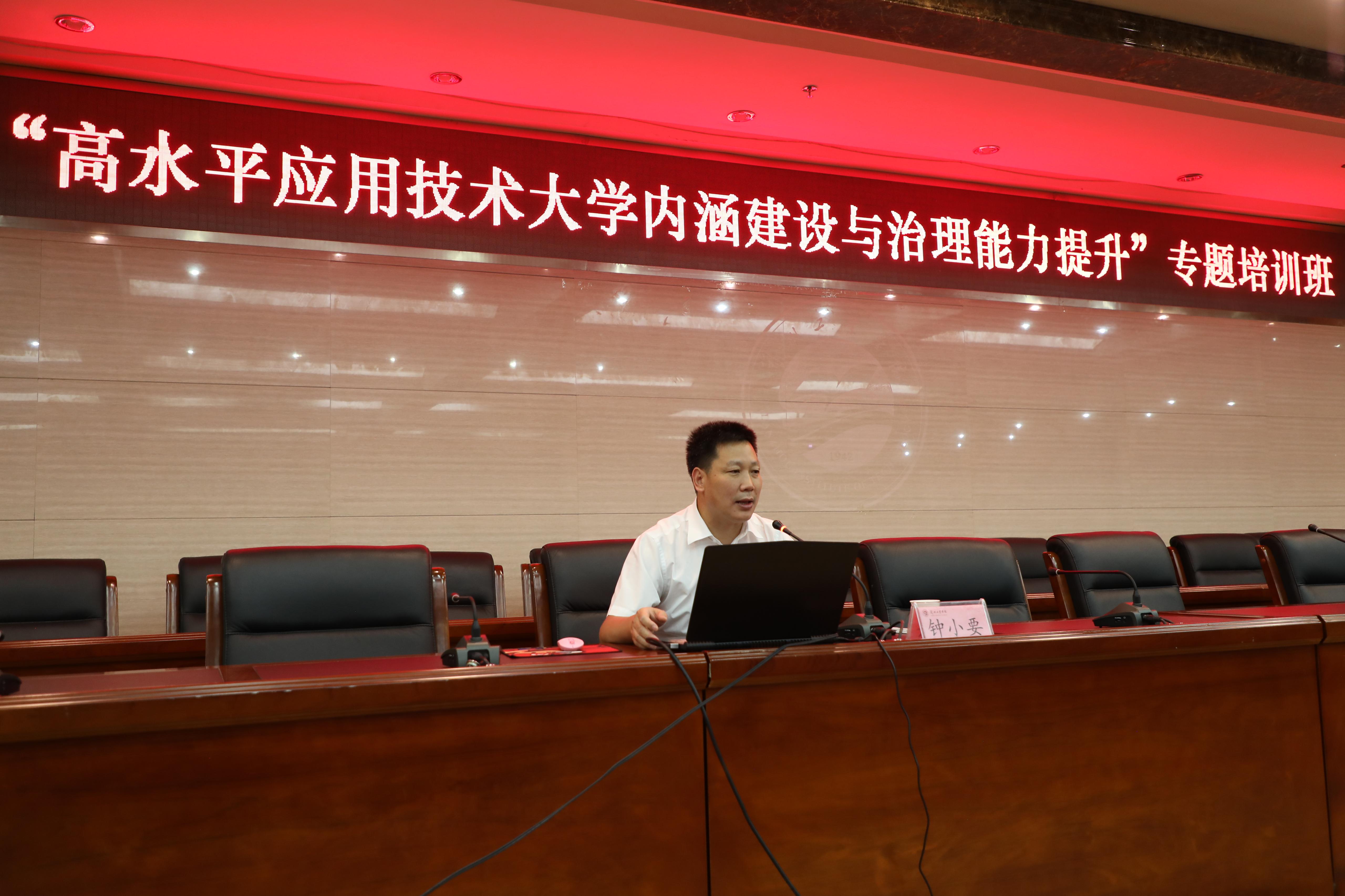 为进一步深化对口支援工作,全方位向高水平一流大学学习借鉴,着力加强学校内涵建设,提升治理能力与治理水平,加快高水平应用技术大学建设步伐,2023年8月20日-8月22日,学校举办了为期三天的“高水平应用技术大学内涵建设与治理能力提升”专题培训班。