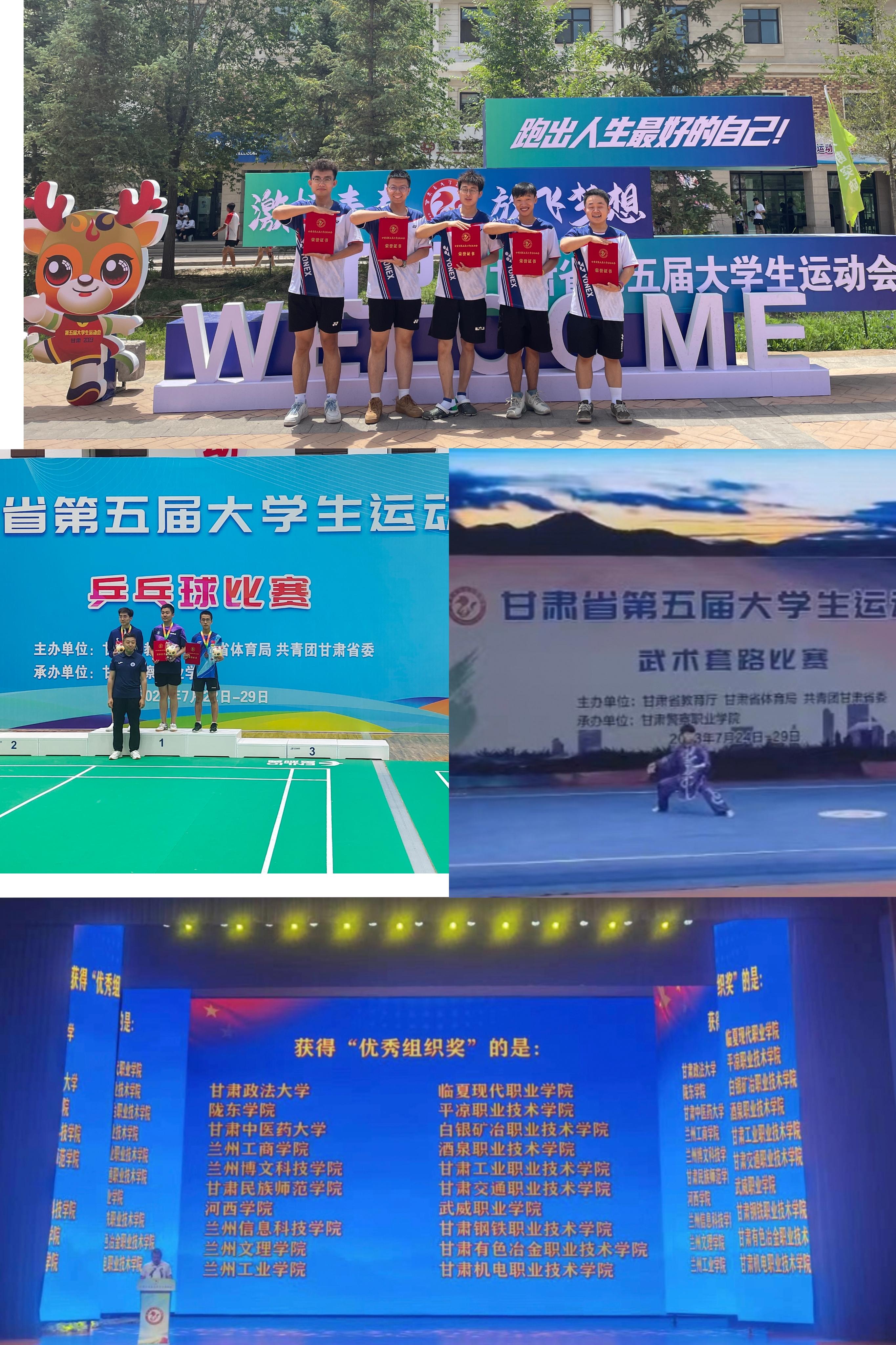 7月29日,由省教育厅、省体育局、团省委主办,甘肃警察职业学院承办的甘肃省第五届大学生运动会圆满落下帷幕。经过激烈角逐,我校运动健儿在本届大运会上喜获乒乓球男子单打铜牌1枚、田径男子5000米第六名、羽毛球男子团体第八名、武术套路男子甲组自选太极拳第八名,学校获优秀组织奖。