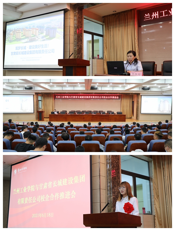 推进会上,李兴民介绍了公司的历史沿革、发展理念、人才引进等情况。他指出,兰州工业学院毕业生以“基础知识扎实、动手能力强、综合素质高、适应性好”的特点深受用人单位的普遍欢迎和社会各界的一致好评。从2000年至今,已有150多名优秀毕业生到长城建设集团参加工作,为集团公司的发展做出了突出贡献。长城建设集团与兰州工业学院本着集成有用资源,提升企业创新能力和科技水平,促进科研成果转化,促进学校、企业和社会共同进步的宗旨,全方位开展实质性的校企合作活动,形成“权责明确、优势互补、合作共赢”的合作教育模式与协同育人机制,实现人才培养、教育教学、科研服务等方面的资源共享,有效推进校企合作育人、合作发展、合作创新。他希望,校企双方将后要进一步巩固合作关系、建立深厚的校企友谊,推动双方高质量发展,共同为甘肃经济社会发展做出积极贡献。
