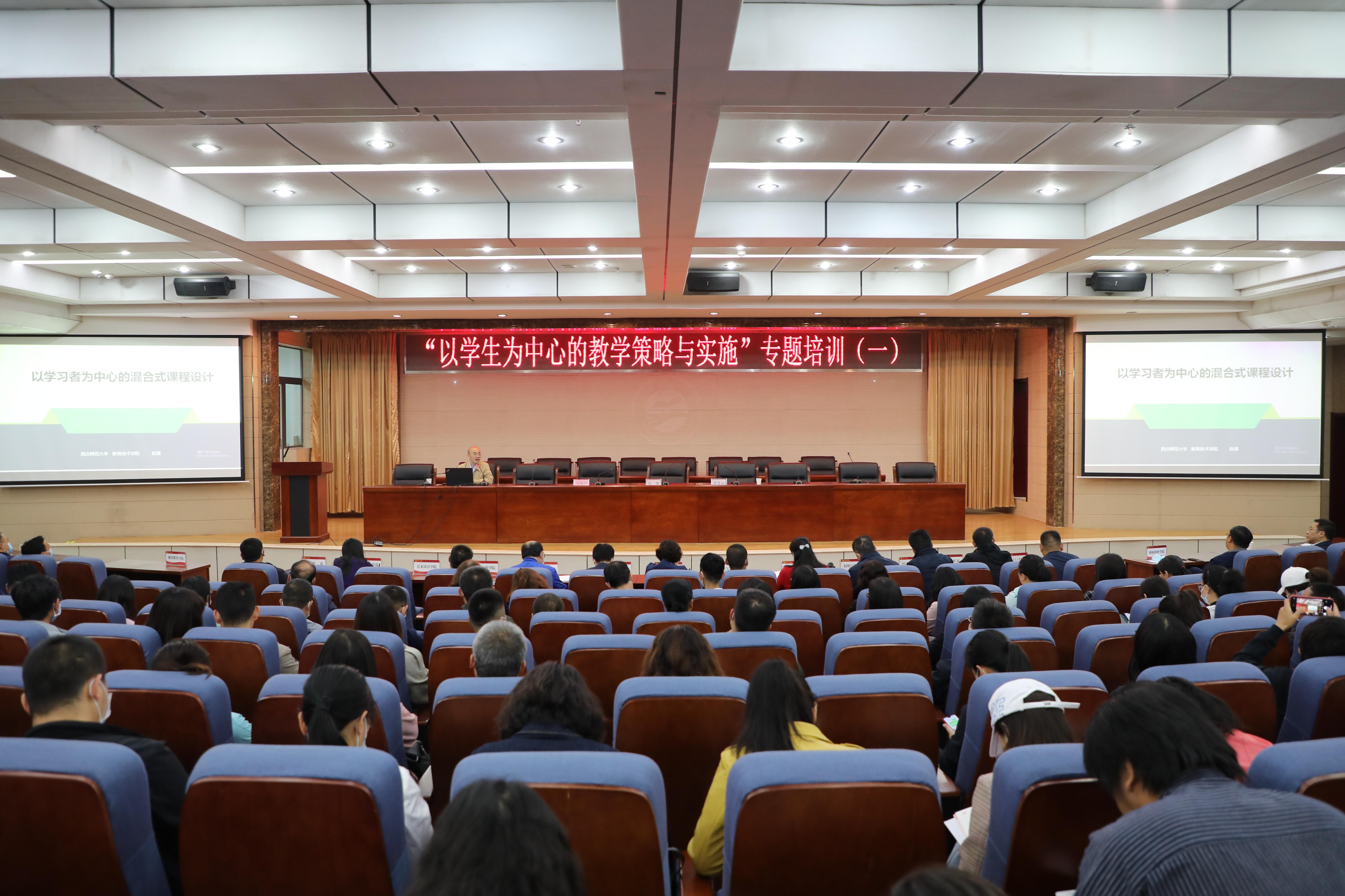 根据学校本科教学合格评估整改工作安排,为了进一步树立“以学生为中心”的理念,引导教师提升职业素养,更新教育教学理念,有效提升教学新方法、新手段、新技术的综合使用能力,5月22日下午,学校举办“以学生为中心的教学策略与实施”专题系列培训会。西北师范大学教师教学能力发展与研究中心主任赵健教授应邀来校作“以学习者为中心的混合式课程设计”专题报告。会议由副校长李贵山主持,副校长刘新辉出席会议,各教学单位班子成员及全体教师共计500余人参加培训。