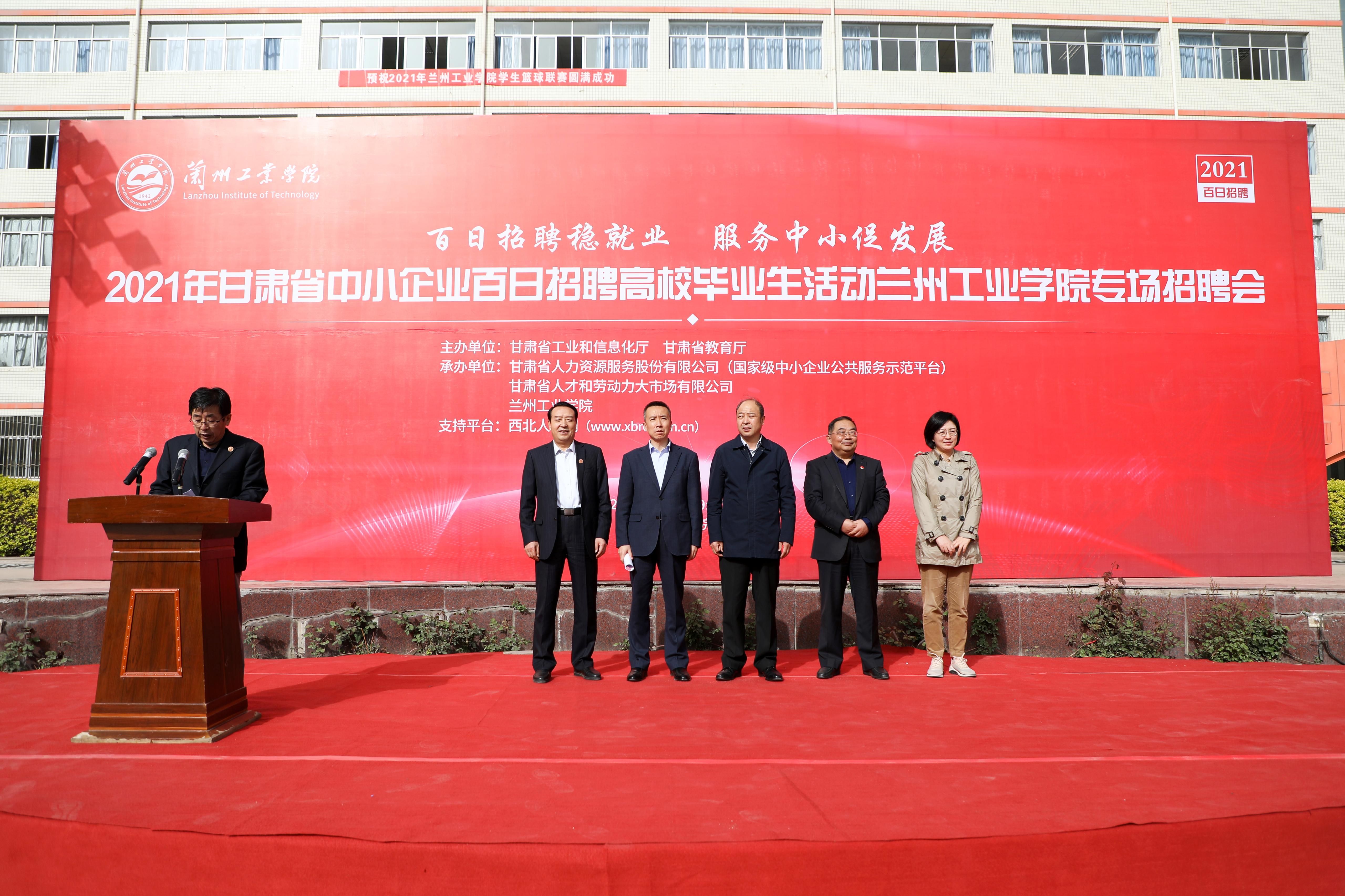 5月7日上午,2021年甘肃省中小企业百日招聘高校毕业生活动启动仪式暨兰州工业学院专场招聘会隆重举行。省工业和信息化厅副厅长陶英平,省教育厅副厅长张国珍,省人力资源行业协会会长、省人力资源服务有限公司董事长王川梅,党委书记俞子泓,校长王华栋等领导出席启动仪式。仪式由副校长马江主持。