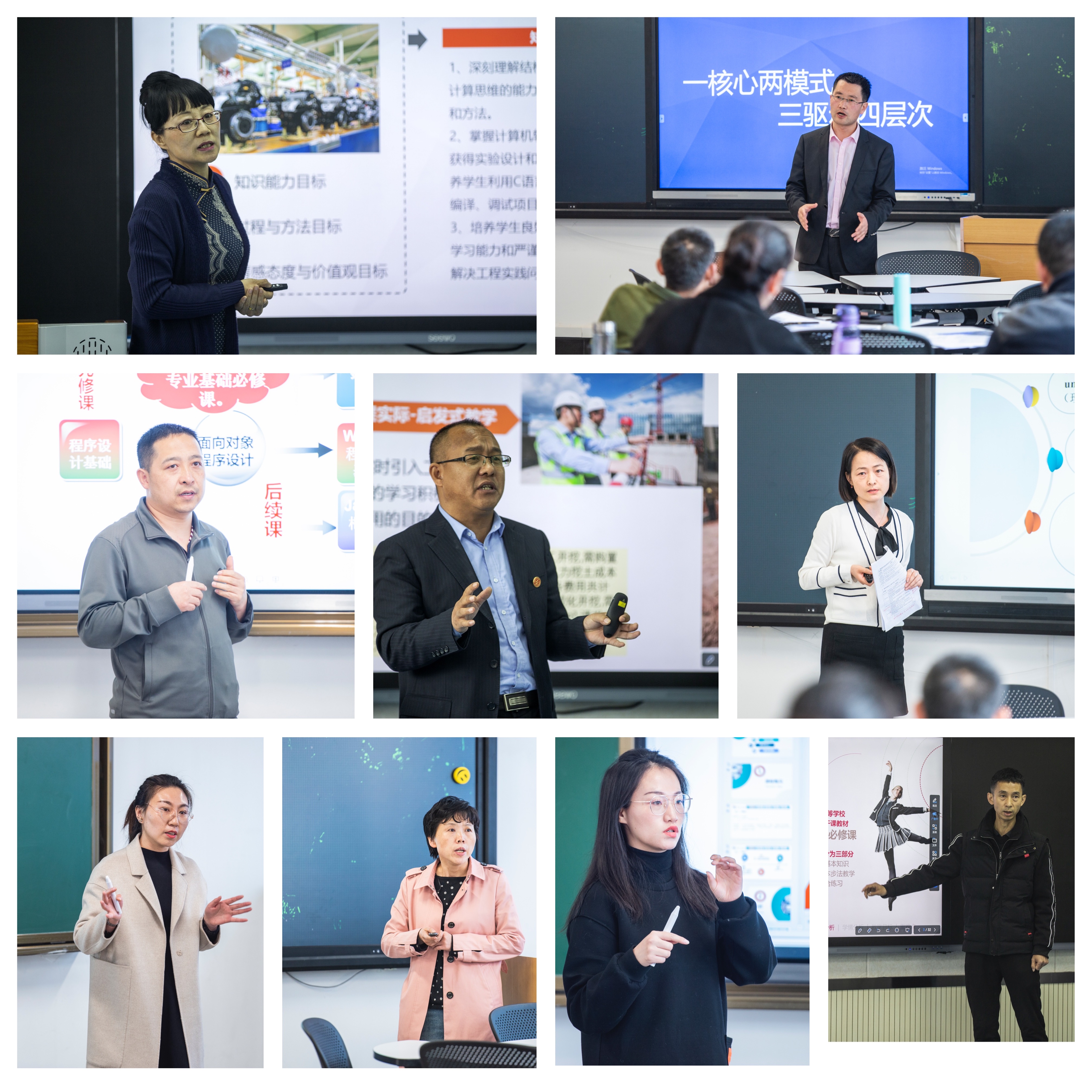 本届大赛自3月初启动,各教学单位教师以个人或课程团队的形式踊跃报名。经过各学院初赛选拔,37名教师(团队)脱颖而出,参加决赛。决赛分为网络评审和现场评审两个阶段,分为教授组、副教授组、中级及以下组3个组别。参赛教师(团队)齐聚一堂,交流经验,切磋技艺。教师结合课程、学科专业特点,汇报课程基本情况、创新设计思路、教学创新点、教学效果评价及课程思政实施情况等。评委围绕教学理念与目标、教学内容、教学过程与方法、考评与反馈等四个方面进行了点评。