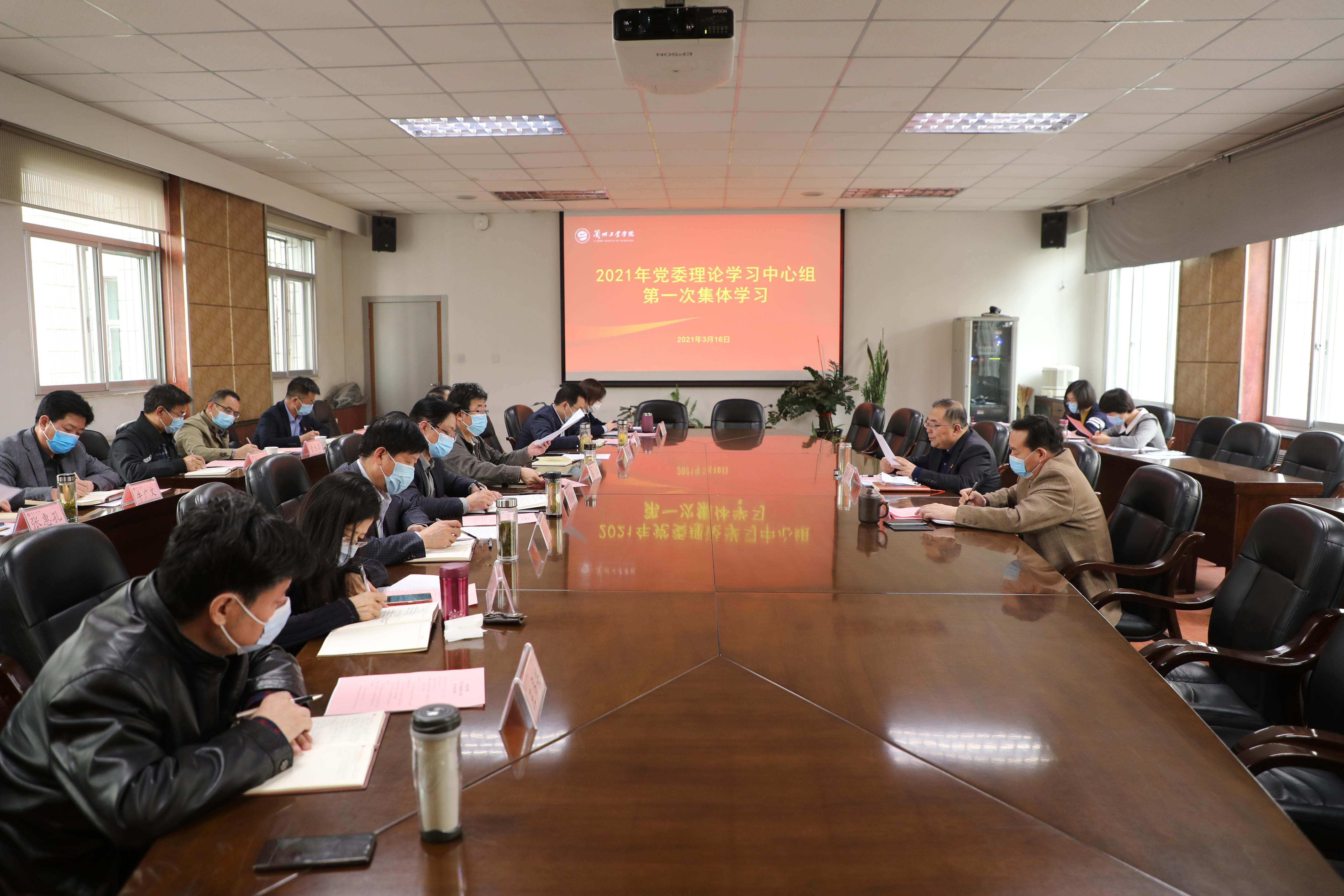 2021年3月16日,学校党委理论学习中心组举行2021年第一次集体学习。校党委书记俞子泓主持学习并讲话,党委副书记、校长王华栋出席学习会,党委理论学习中心组成员、党委职能部门负责人、马克思主义学院党政负责人参加学习。