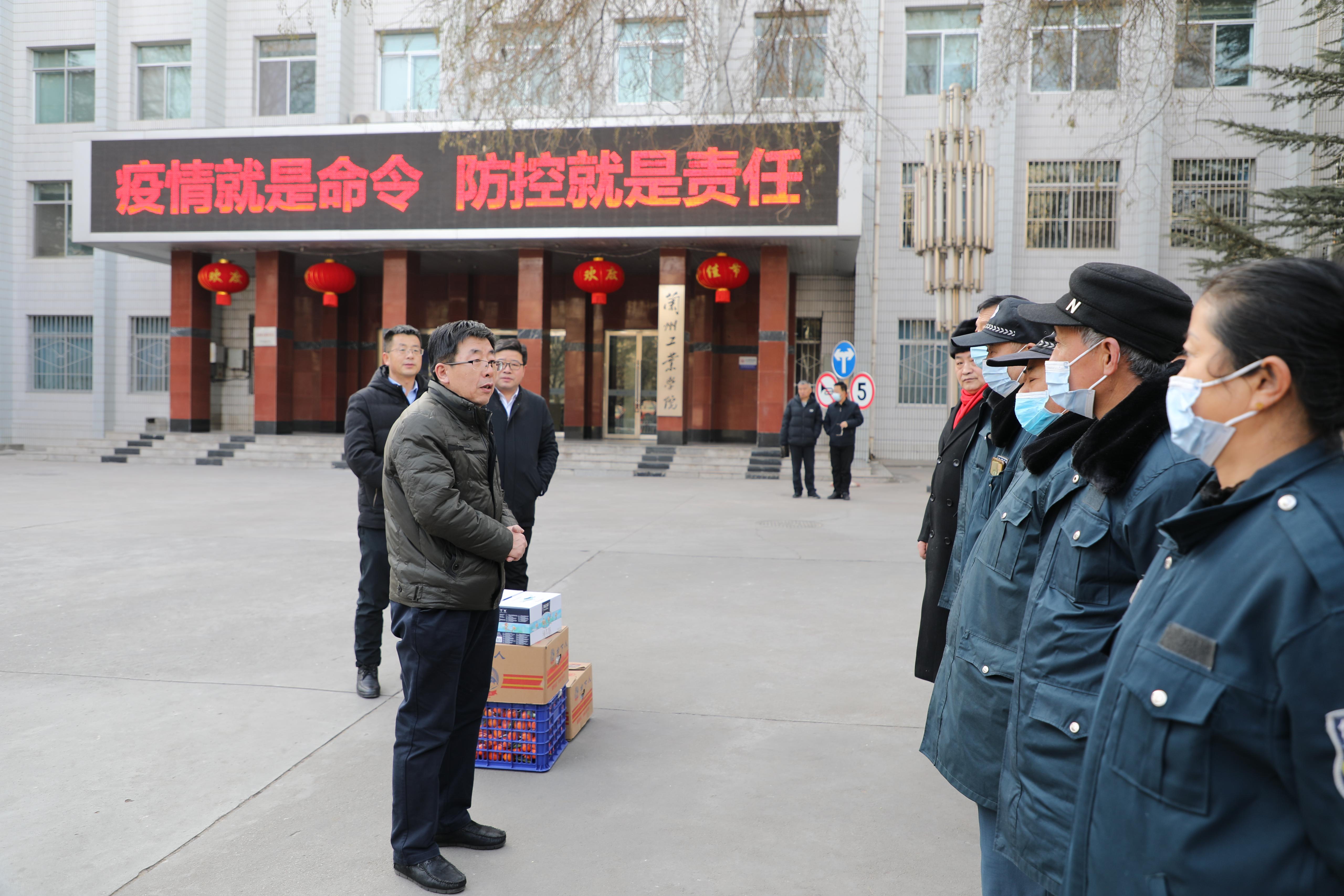 2月4日上午,在新春佳节来临之际,副校长马江走访慰问寒假期间坚守岗位的校门卫、锅炉房、学生公寓等相关部门值班人员。