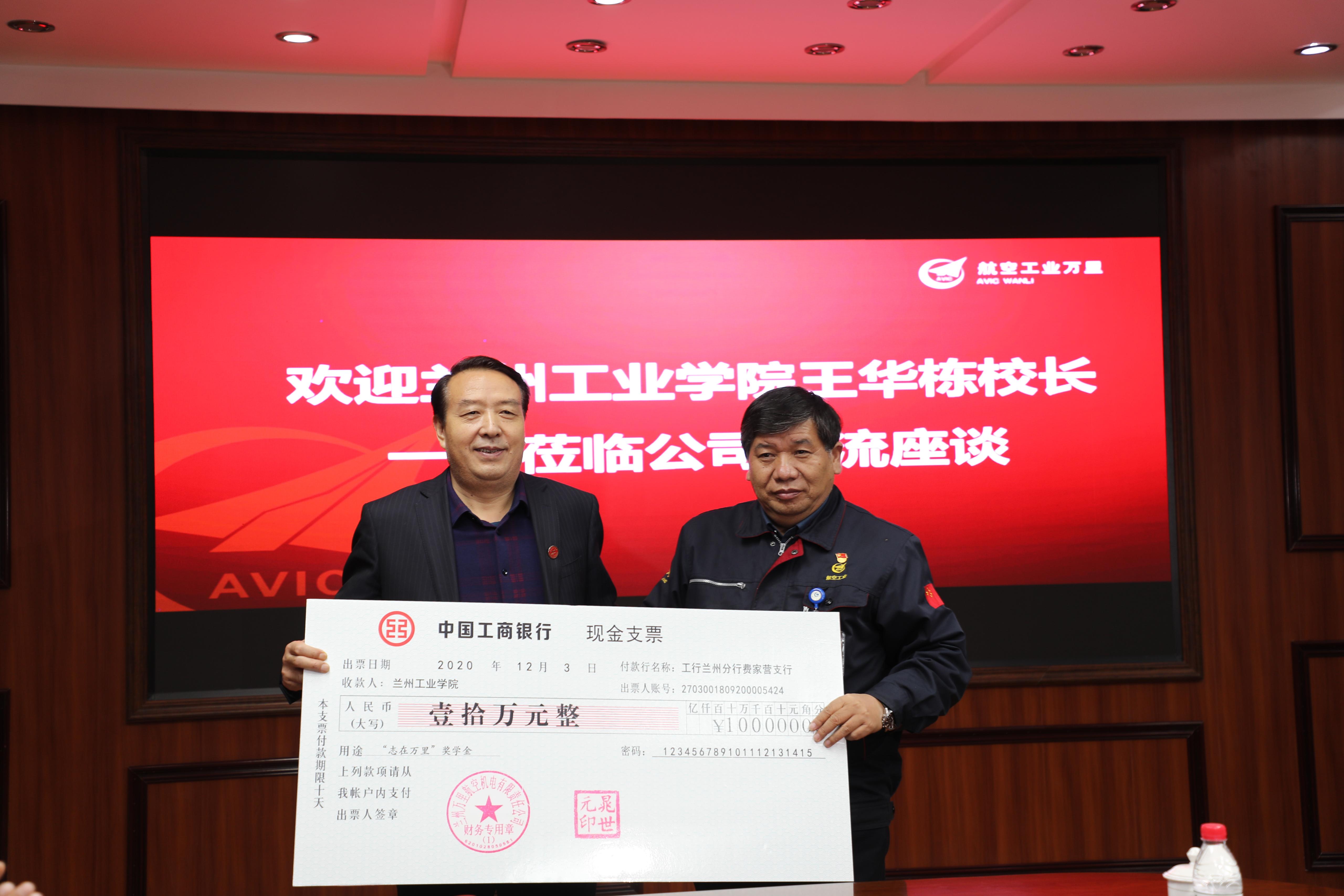 万里航空机电有限责任公司在兰州工业学院设立“志在万里”奖学金