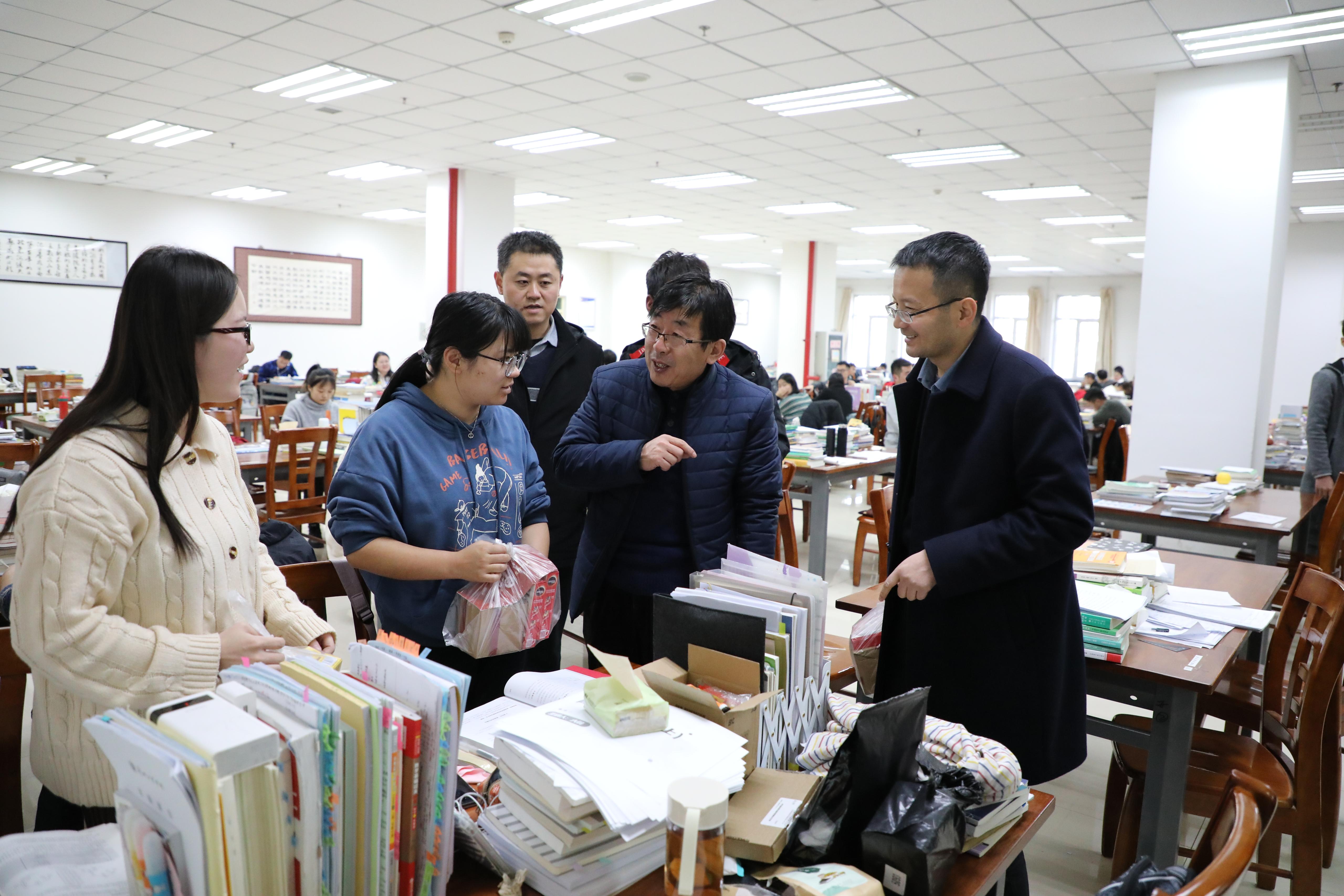 在2021年全国硕士研究生招生考试即将到来之际,11月24日下午,副校长马江深入图书馆考研自习室看望慰问我校550余名考研学子,为他们送上关怀与祝福。党委宣传部、党委学工部负责人、各二级学院负责人参加活动。
