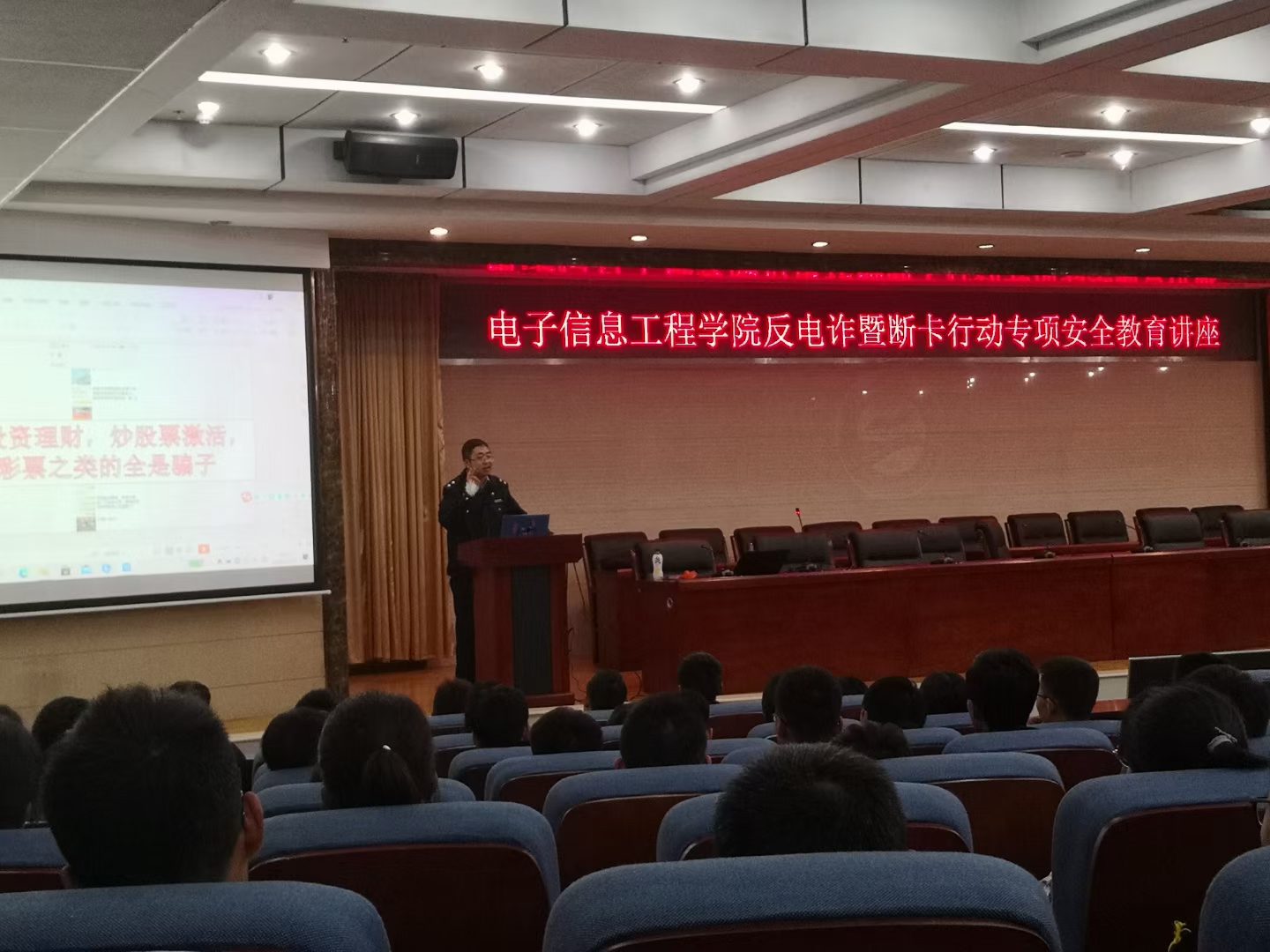 本次防范校园不良网贷和电信网络诈骗警示教育活动的开展,不仅让同学们进一步了解与校园贷、电信诈骗相关的知识,也给同学们讲述了遇到这种情况应该采取的正确应对措施,引导教育青年学生提高警惕,加强防范,切实维护自身的合法权益和财产安全,有力推动了“平安校园”建设。