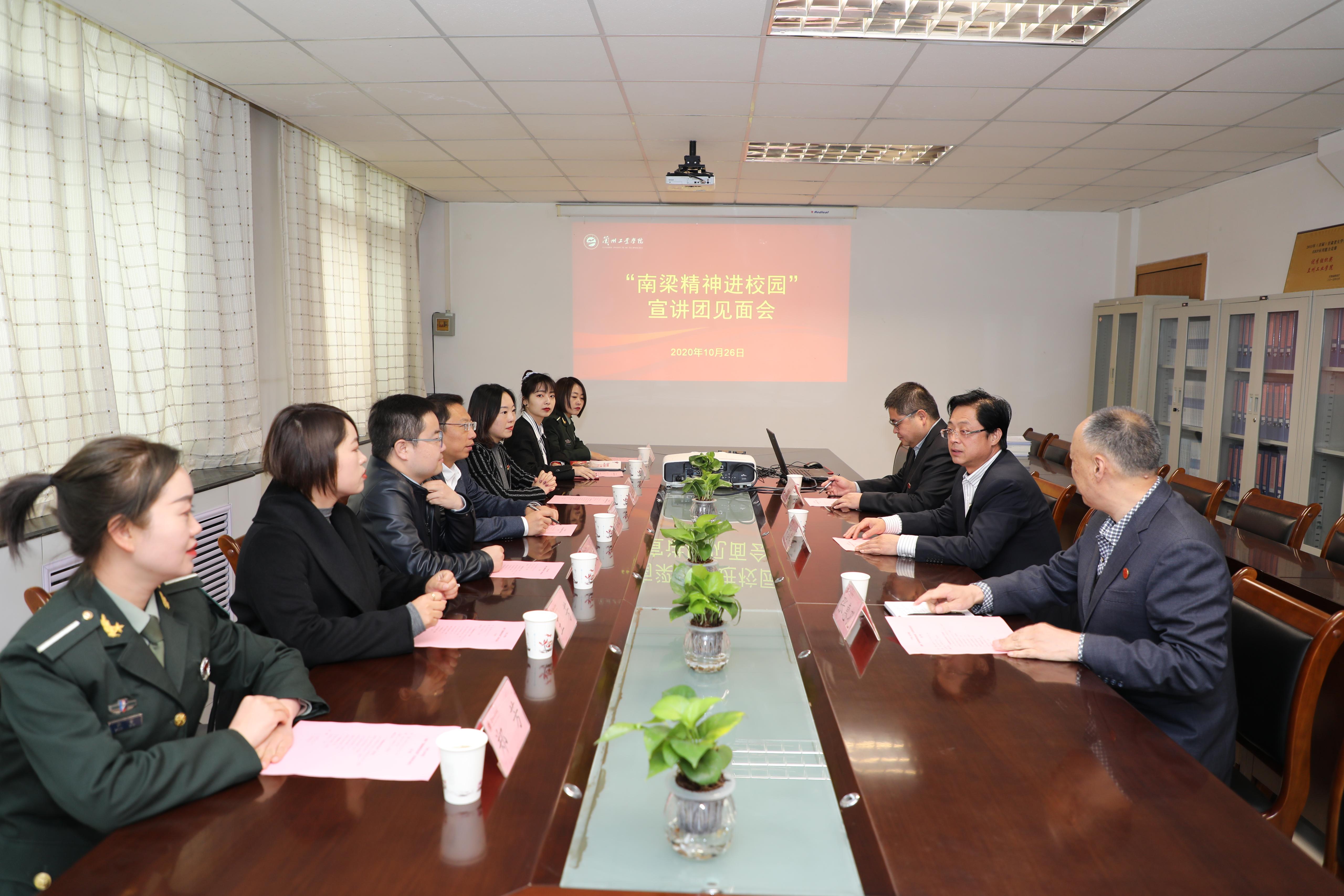 10月26日上午,学校举行“南梁精神进校园”主题宣传活动。宣传活动前,党委副书记黄荟铭会见了省“南梁精神进校园”宣讲团一行。