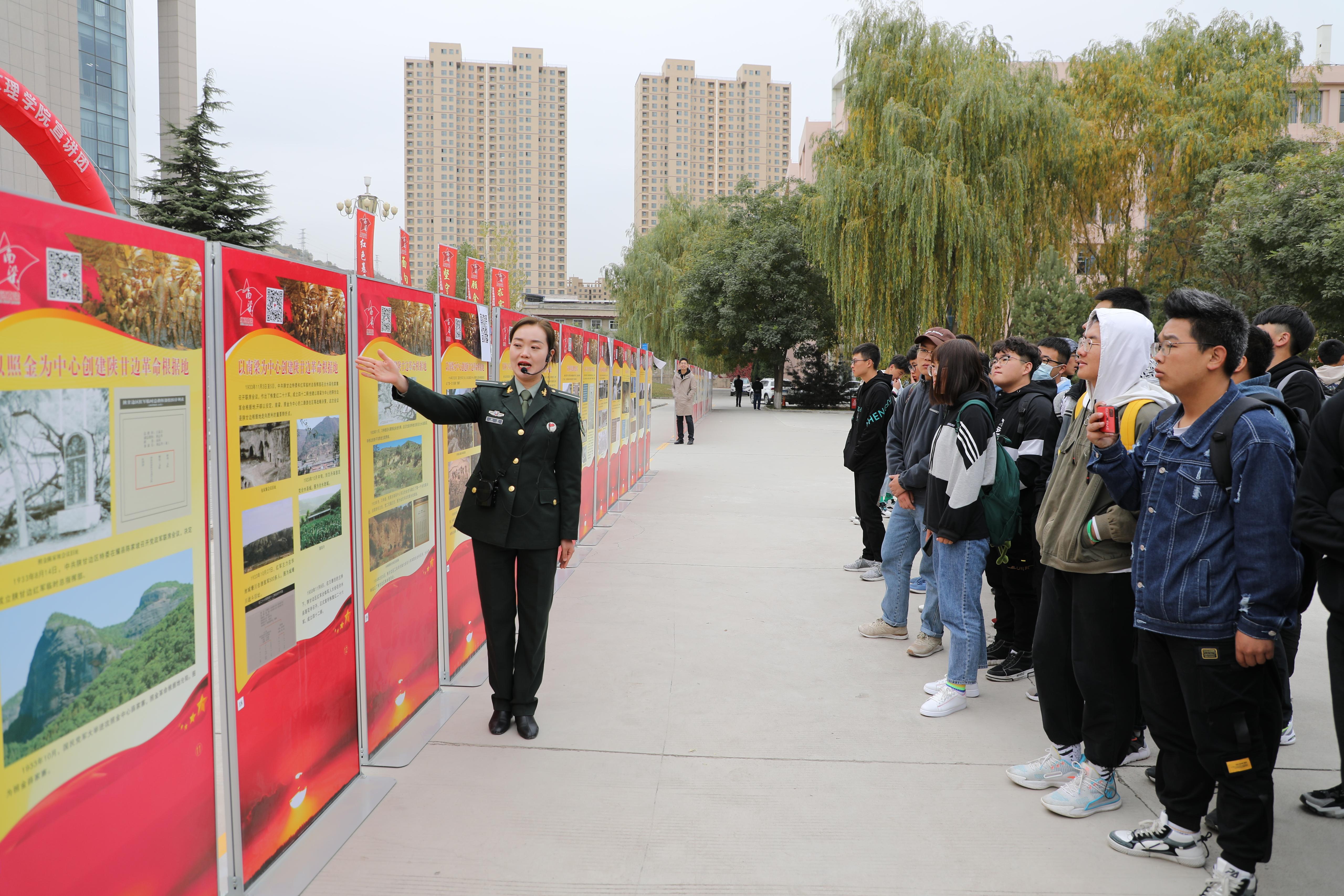 学校广大师生在图书馆前观看了“讲好南梁故事·永远跟党走”主题展览,深入了解了“南梁故事”和刘志丹、谢子长、习仲勋等老一辈无产阶级革命家的光辉事迹和伟大精神。师生们纷纷表示,要继承和发扬革命传统,做红色基因的传承者,做时代精神的弘扬者,不忘初心,牢记使命,为祖国的繁荣富强贡献自己的力量,为实现中华民族伟大复兴的中国梦而努力奋斗!