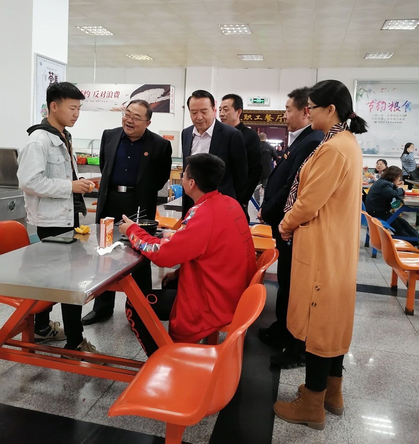 10月12日上午,党委书记俞子泓、校长王华栋、副校长马铁信先后深入学校南北校区食堂,检查学生食堂卫生安全、文明就餐等情况。 检查中,校领导仔细查看食堂操作间、仓库、留样间、洗消间等场所,详细询问近期食堂卫生、安全管控、勤俭节约等情况,听取了中心负责人近期迎评工作开展情况汇报,并与就餐学生进行了亲切交流。 校领导充分肯定近期饮食服务中心工作,对进一步做好全校师生食品安全卫生及迎评工作提出了要求。一要高度重视师生食品安全,做好安全管理。二要做好服务,引导学生厉行节约、文明就餐。三要查漏补缺,以饱满的工作热情服务师生,全力以赴做好迎评各项工作。为学校发展贡献智慧和力量!