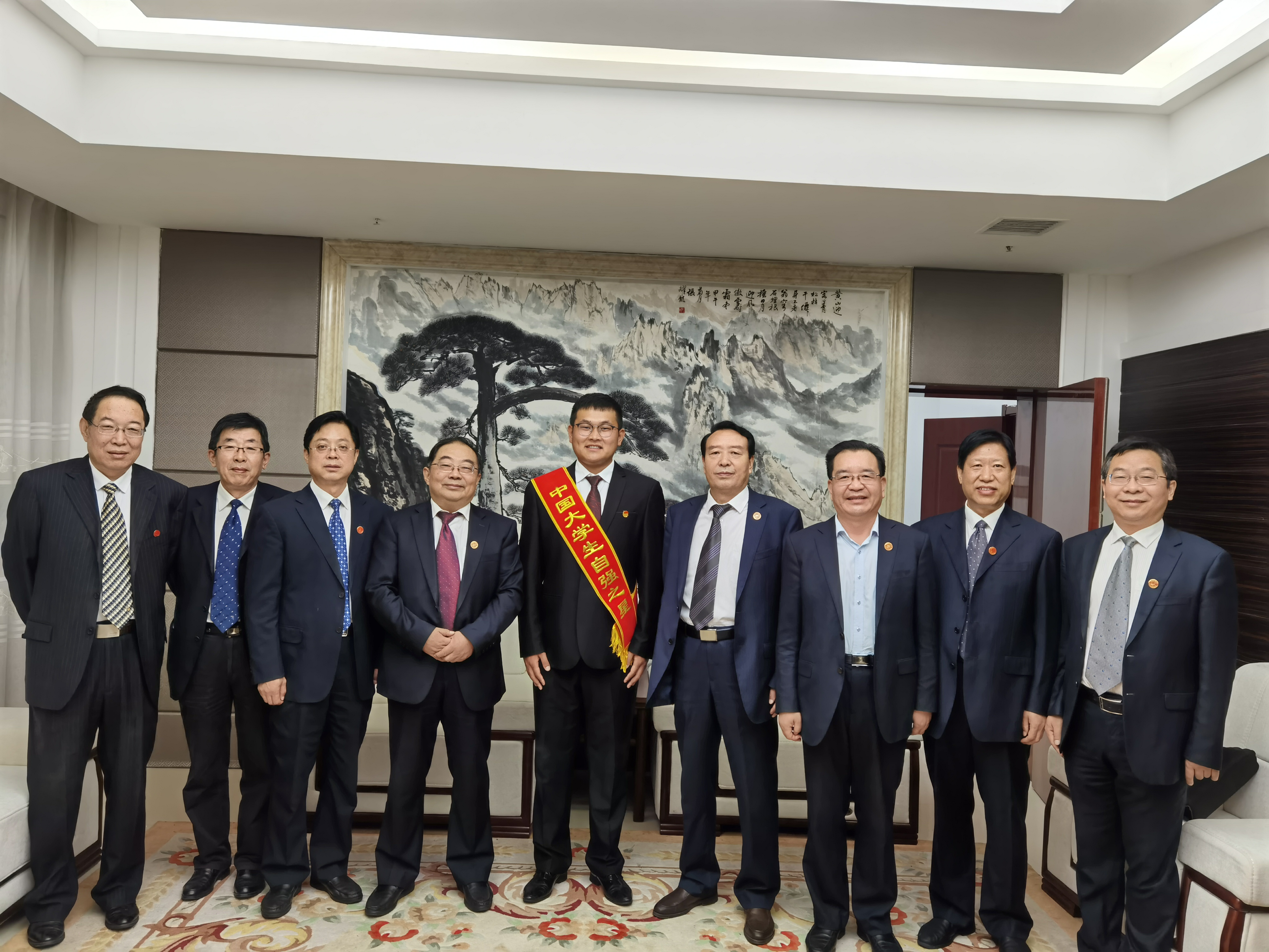 9月13日上午,党委书记俞子泓、校长王华栋等学校领导在图书馆贵宾厅会见了应邀参加2020级新生开学典礼的“中国大学生自强之星”称号获得者、我校2019届毕业生、中铁三局集团校友赵梦龙。