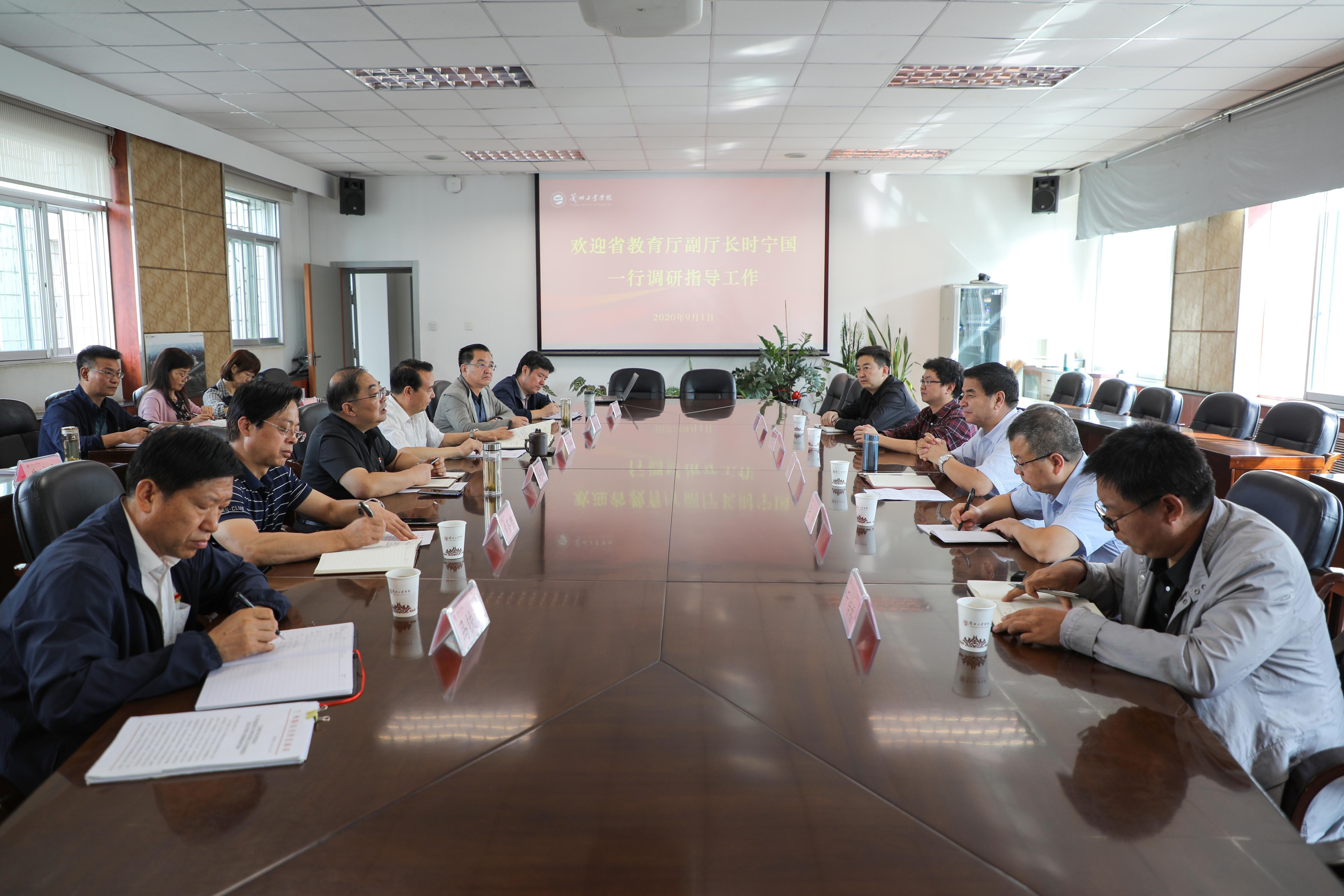 9月1日,省教育厅副厅长时宁国一行来学校调研指导工作,学校在第二会议室召开汇报座谈会。省教育厅法规处、财务处、审计处负责人出席;学校党委书记俞子泓、校长王华栋,党委副书记黄荟铭,副校长马铁信、党委委员王多兴出席,相关业务处室负责人参加了座谈交流。