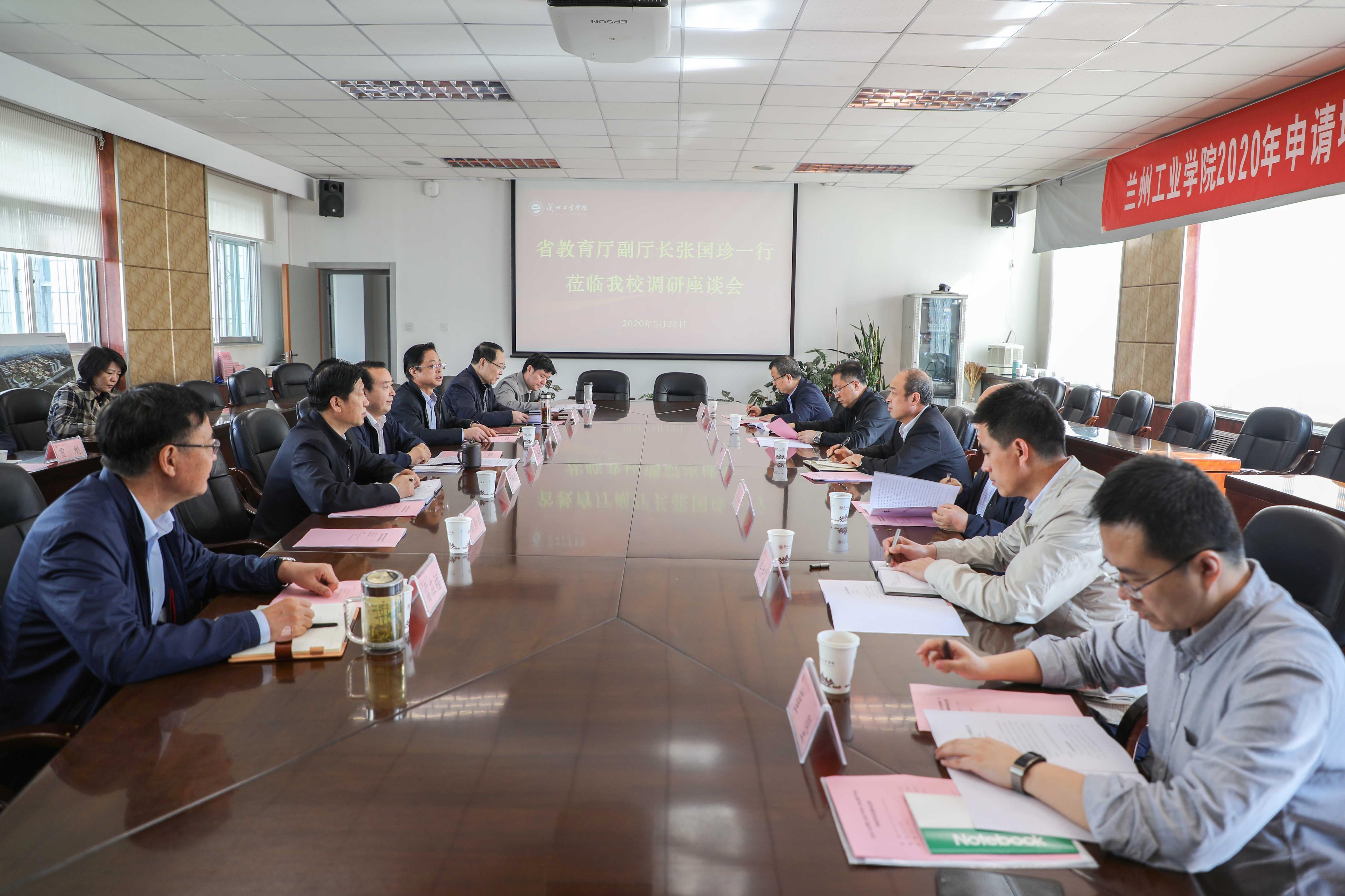 5月28日,省教育厅副厅长张国珍一行来学校调研指导工作,学校在第二会议室召开汇报座谈会。省教育厅科技处、学位办、高教处、学生处、发规处负责人出席;校长王华栋,党委副书记黄荟铭,副校长马铁信、李贵山、刘新辉,总会计师王多兴,校长助理雷在福出席,学校有关业务处室负责人参加了座谈交流。党委副书记黄荟铭主持会议。
