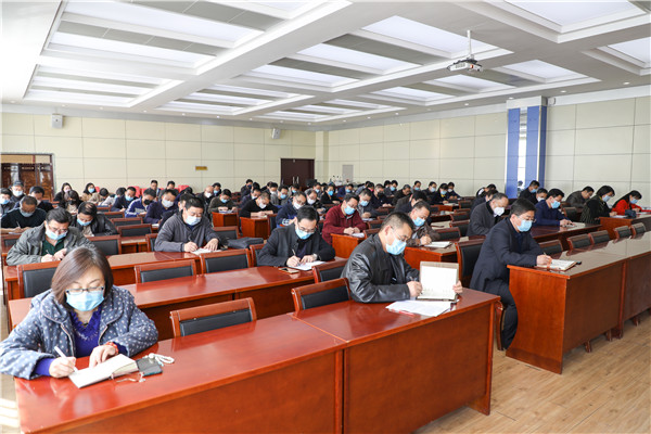 2020年3月24日下午,学校在第一学术报告厅召开迎评促建及教学工作会议,纪委书记廉志端,副校长李贵山出席会议。副校长刘新辉主持会议。学校各部门负责人、各教学单位党政负责人、主管教学副院长(副主任)参加会议。