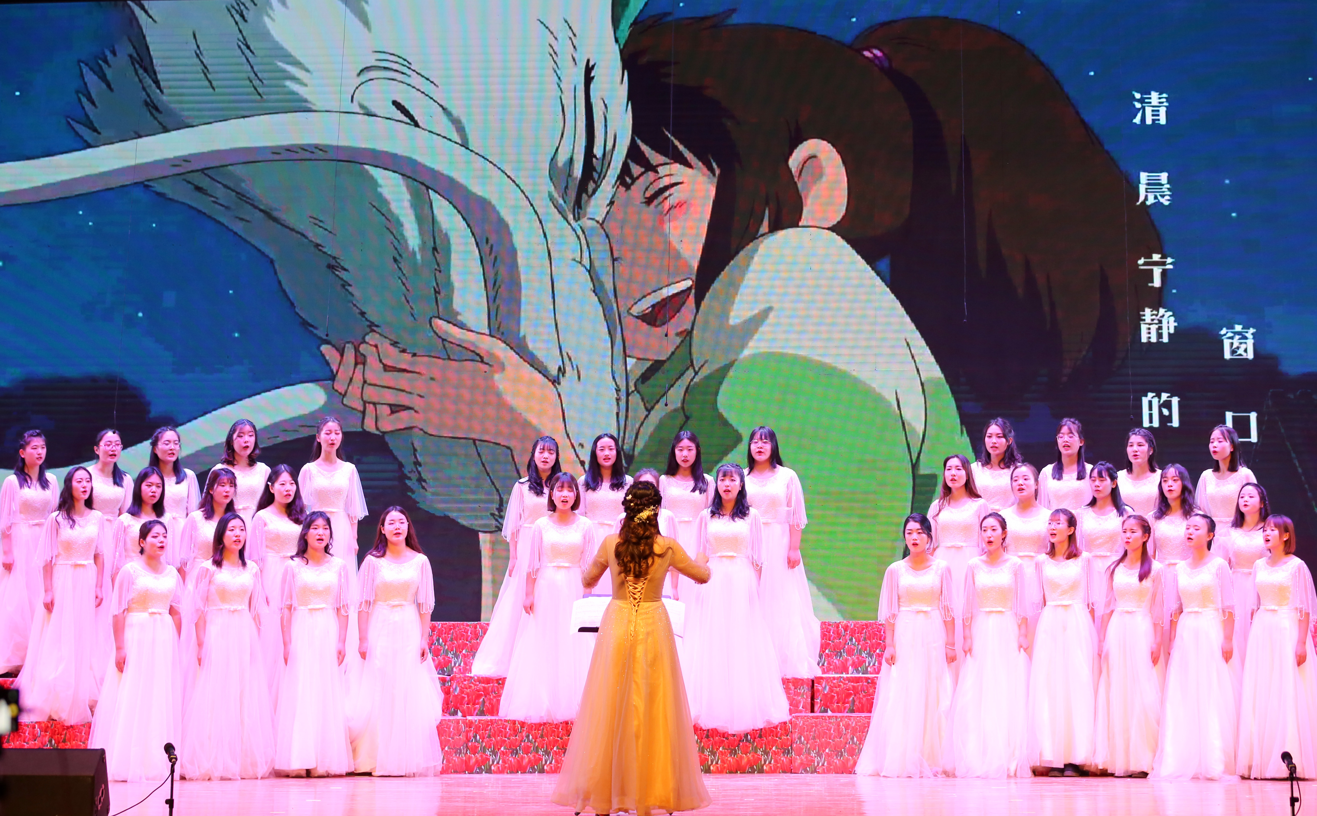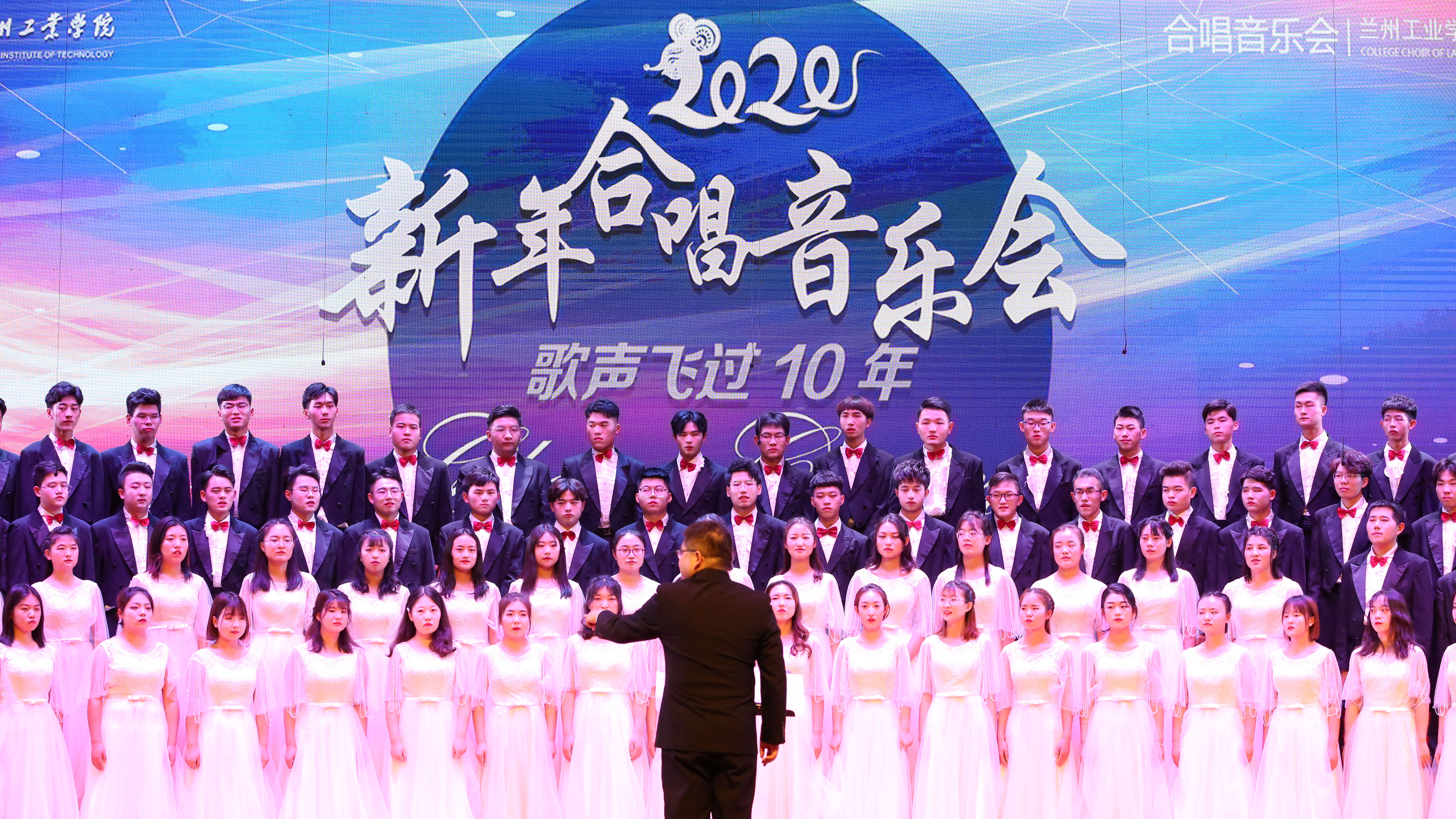 12月24日,2020新年合唱音乐会在学校大礼堂举行。校党委书记俞子泓,纪委书记廉志端,副校长马江、李贵山,总会计师王多兴,机关各部门负责人、各基层党政负责人、全体辅导员、班主任与千余名师生一同观看了演出。 音乐会在合唱团四位指导教师王斌、周雅娉、吕雪婷、孔杰与承担钢琴艺术指导的我校学生宫璞、黄丽茹的合唱导赏中开始。在学校大学生合唱团成立十周年之际,全体成员用委婉动听的歌声,向观众讲述了十年来的不断坚持、探索与努力。音乐会在曲目选择上首次尝试推陈出新,既有《夜空中最亮的星》、《最美的太阳》、《永远同在》、《天空之城》等耳熟能详的曲目,又有凸显江南风情的《饮湖上初晴后雨》、王斌原创曲目《太阳花》和编配曲目《那段时光》,更有爱尔兰民歌《多年以前》、俄罗斯民歌《顿河好汉》等脍炙人口的经典中外民歌及世界著名歌剧选段《猎人合唱》等风格多样、题材新颖的合唱曲目。合唱团富有张力、层次细腻、美妙的和声及充满律动感的表演让观众真切感受了合唱艺术之美。经久不息的掌声响彻整个礼堂。我校青年教师郭晶晶领唱的作品《我的祖国》,将全场气氛推向高潮,合唱团员将最美的歌声化作对祖国母亲的深切祝福,生动展示了工院学子深厚的家国情怀。音乐会最后,新老合唱团成员及毕业多年的合唱团校友共同登台演绎《友谊地久天长》,一路长歌情,一生工院人,毕业多年的校友用歌声表达了心系母校、祝福工院的拳拳之心。随后,合唱团师生共同发声:“在合唱中,人类亲如一家!祝兰州工业学院的明天更加辉煌!”,表达了大学生合唱团对学校的美好祝愿和对全体师生的真诚祝福。 近年来,大学生合唱团组织参与校内外大型演出、比赛、交流39场(次),排演的作品先后在省级、国家级各类比赛中获奖。大学生合唱团始终坚持“歌唱祖国、讴歌时代、歌唱青年生活;宣传先进文化、构建和谐校园”的宗旨,坚持“健康、快乐、和谐、奉献”的精神,为丰富校园文化生活,促进学校文明校园建设做出了积极贡献。
