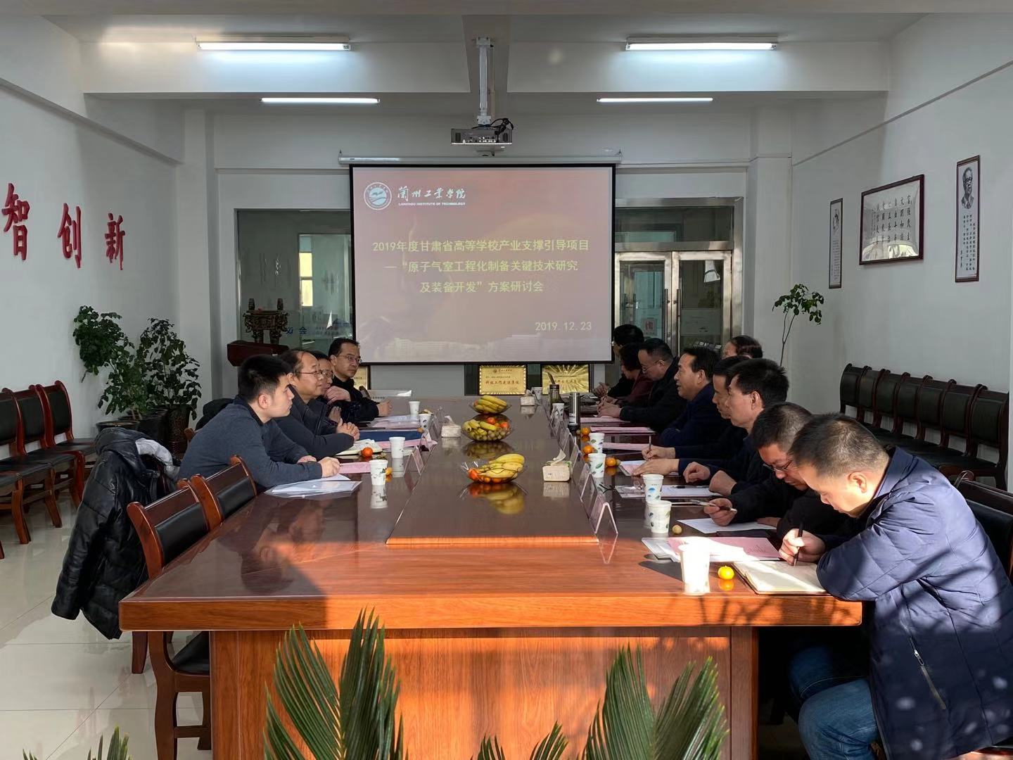2019年12月23日,学校举行2019年度甘肃省高等学校产业支撑引导项目—“原子气室工程化制备关键技术研究及装备开发”方案研讨会暨学校“航空航天配套装备应用技术研究所”揭牌仪式。兰州空间技术物理研究所、兰州真空设备有限责任公司等4名校外专家应邀出席会议。校长、项目负责人王华栋,相关负责人与团队主要成员参加了会议。