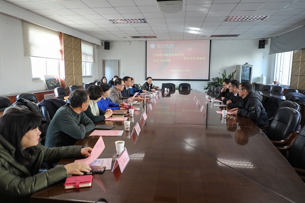 12月18日下午,学校与九牧厨卫股份有限公司进行校企合作座谈会。九牧大学校长丁顺龙、九牧厨卫股份有限公司品类工厂人力资源总监王清明、五金人力资源部招聘主任张恩平,学校副校长李贵山出席会议,校长助理雷在福主持会议。 会上,李贵山代表学校对九牧厨卫股份有限公司丁顺龙一行来校交流表示欢迎,并介绍了学校发展历程、人才培养、学科建设、产教融合、科学研究等情况。丁顺龙介绍了企业发展、校企合作、产教融合、学生实习、人文环境等情况。随后,双方就学生实习、产教融合等进行了深入交流探讨,达成初步合作意向。 会后,丁顺龙一行参观了机电工程学院、材料工程学院、计算机与人工智能学院实验室。 机电工程学院、电气工程学院、材料工程学院、计算机与人工智能学院、教务处、招就处负责人参加座谈会。