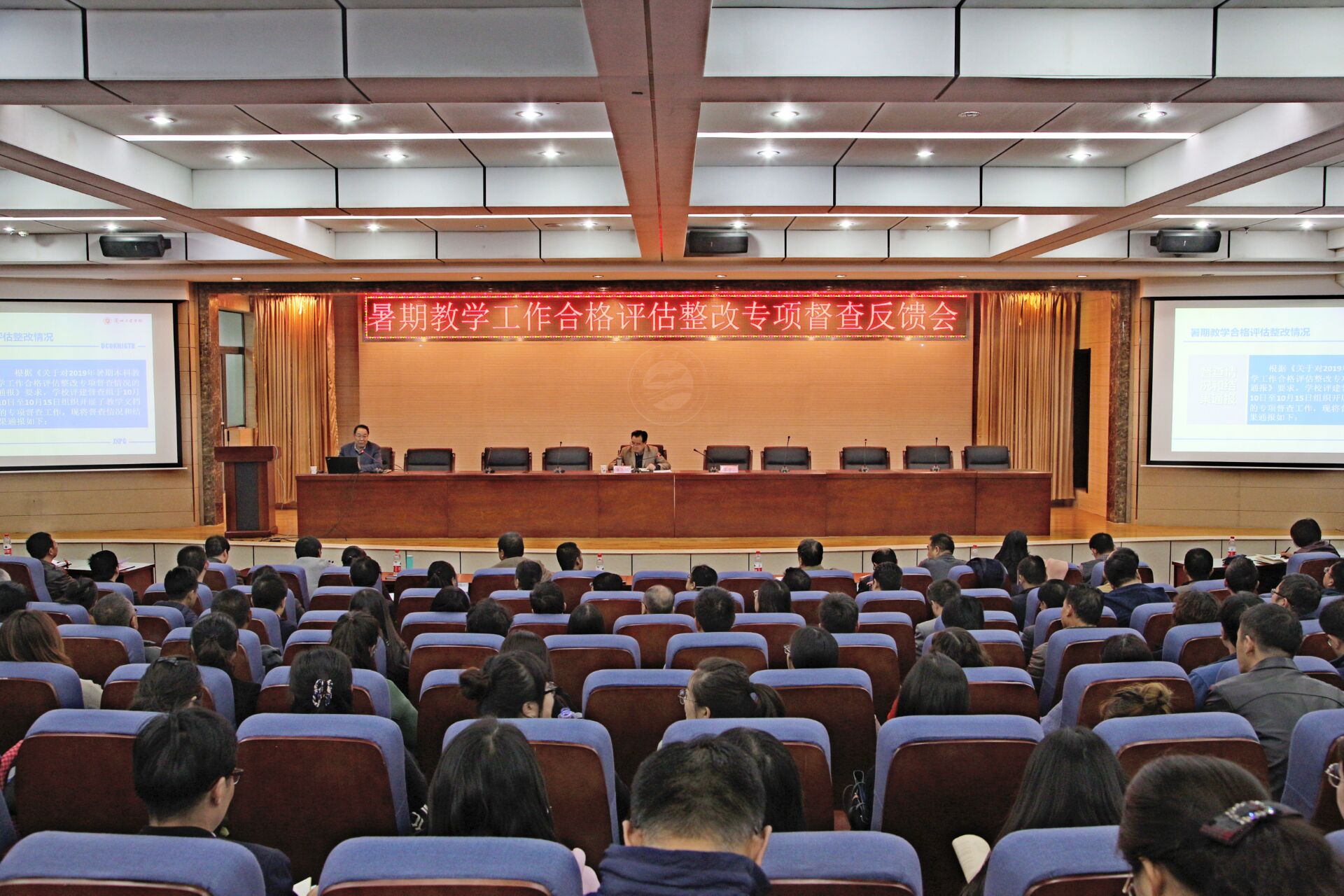 李贵山总结了本次评估整改督查工作情况,通报了督查过程中发现的课堂教学、教学文档、课程考核、毕业论文(设计)工作不规范不到位等12类问题,就整改内容与规范要求逐一进行了全面细致的解读和示范说明,并对下阶段整改工作提出了具体指导意见。他要求各教学单位,逐层逐步查找教学规范细节性的问题,结合各自实际深入分析查摆,切实进行整改,务求落实,确保存档材料的规范性及准确性,为学校迎接教学工作合格评估打下坚实基础。李贵山还就2019年高等教育质量监测数据采集工作情况进行了反馈,并对下阶段数据采集工作提出了要求。