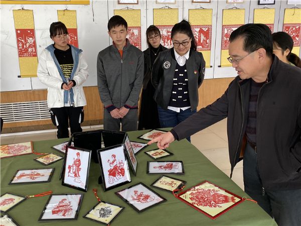 俞子泓对参展的作品逐一进行了点评和指导,勉励同学们以庆祝中华人民共和国成立70周年系列活动为契机,坚定文化自信,在剪纸技艺传承与创新中体现中华优秀传统文化、革命文化、社会主义先进文化。希望同学们进一步加强剪纸技艺的学习和交流,注重提升办展的水平和层次,努力创作更多主题深刻、寓意深远、特色鲜明的剪纸作品。