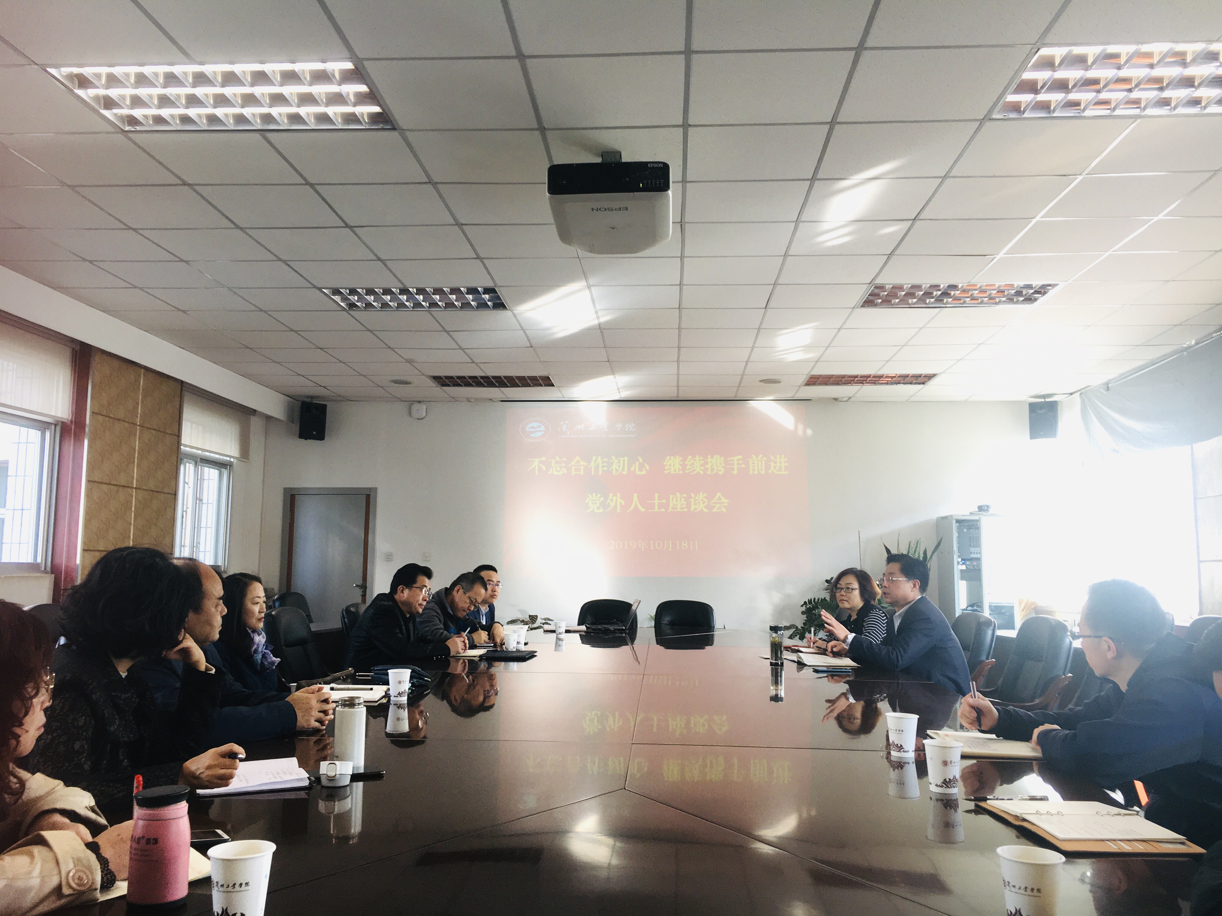 10月18上午,学校召开党外人士代表"不忘合作初心、继续携手前进"主题教育暨征求意见座谈会。党委副书记黄荟铭出席会议并讲话,各民主党派、无党派负责人及代表参会,统战部部长张红岩主持会议。
