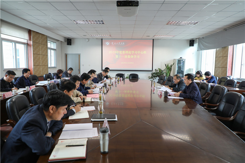 10月8日上午,学校党委理论学习中心组集体学习习近平总书记在庆祝新中国成立70周年大会上的重要讲话精神,这也是今年校党委理论中心组第11次集体学习。党委书记俞子泓主持学习。校长王华栋,党委副书记黄荟铭,纪委书记廉志端,副校长马江、陈文贤、马铁信、李贵山,总会计师王多兴,校长助理雷在福,党委职能部门负责人参加了学习。
