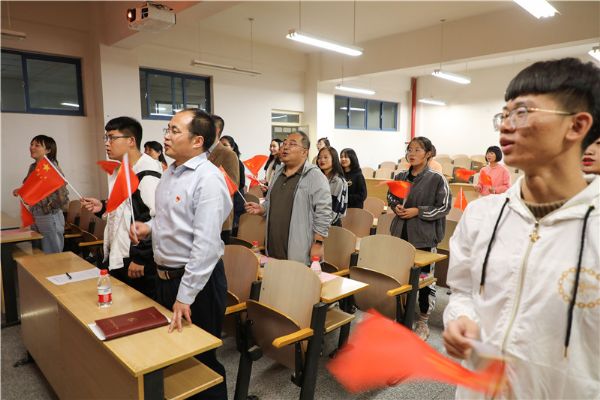 “五十六个星座五十六支花,五十六族兄弟姐妹是一家,五十六种语言汇成一句话,爱我中华爱我中华爱我中华……”,9月25日下午,在第四教学楼404教室内,50余名师生正用婉转动听的歌曲表白祖国。一同和师生参加马克思主义学院秘书学18班班会的校党委书记俞子泓与同学们坐在一起,认真听取同学们的发言,并与同学们一起通过唱国歌,观看爱国主义微视频、讲70年辉煌成就等多种形式祝福伟大祖国70华诞。