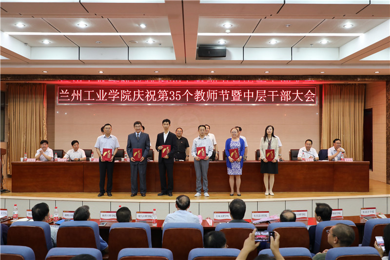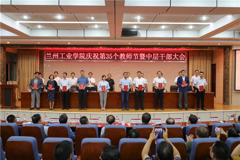 会上,党委副书记黄荟铭带领全体教师,面对国旗重温人民教师誓词;纪委书记廉志端宣读了《兰州工业学院关于表彰2019年“师德标兵”的决定》;副校长马江宣读了《关于表彰“弘扬爱国奋斗精神 建功立业新时代”活动先进个人的决定》;副校长陈文贤宣读了《关于表彰2019年省级本科教学工程项目的决定》;副校长马铁信宣读了《关于表彰2019年教师队伍建设奖获奖教师的决定》;副校长李贵山宣读了《关于表彰2019年学科技能竞赛优秀团队的决定》和《关于表彰2019届优秀本科毕业设计(论文)的决定》。