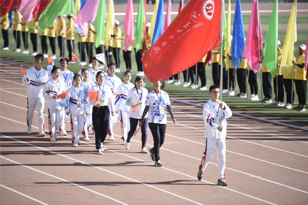7月16日上午,由省教育厅、省体育局、共青团甘肃省委员会主办的第四届甘肃省大学生运动会在河西学院开幕。校长王华栋应邀出席开幕式。学校体育部党政负责人,代表团成员和健美操代表队参加了开幕式。 开幕式后,王华栋看望慰问了健美操代表队的全体运动员,勉励大家发扬拼搏精神,文明参赛,赛出风格,赛出成绩,赛出水平。要求运动员听从大会安排,展现工院人良好的精神风貌,彰显大学生体育活力、青春风采和精神风貌,预祝代表队在本次大运会中取得好成绩。 甘肃省大学生运动会每四年举办一届,本届大运会以“激情绽放大陇原,青春追梦新时代”为主题,共设置田径、足球、篮球、排球、乒乓球、羽毛球、武术、健美操8个大项,178个小项。我校46名运动员参加本届大运会的5个比赛项目。