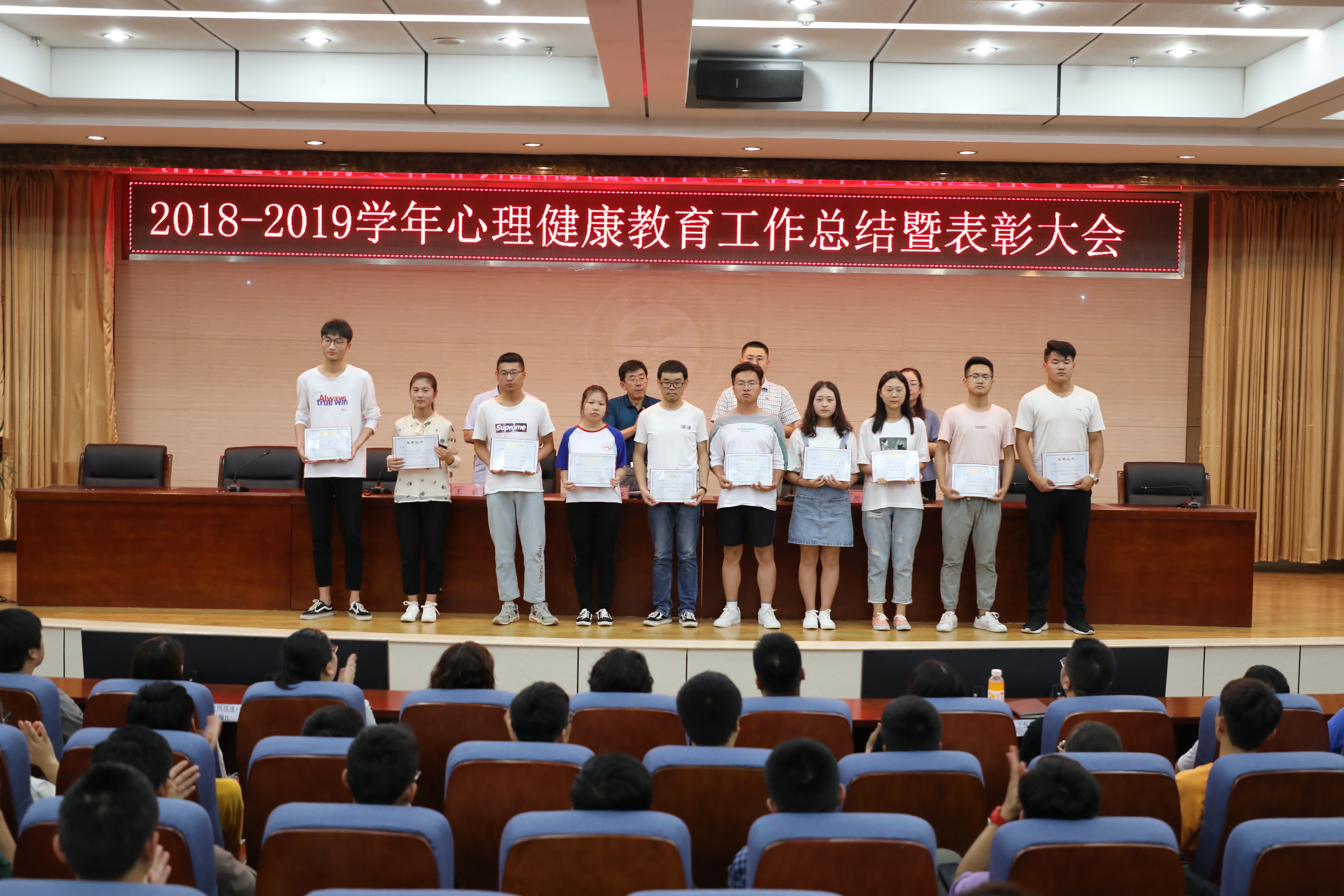 会议表彰了获得2018-2019学年心理健康教育工作先进个人、学校首届心理剧大赛和心理征文获奖者。