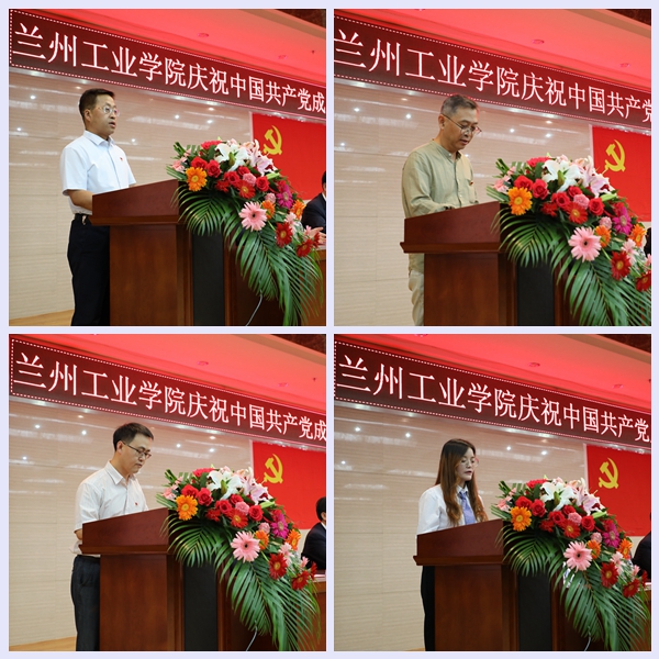 先进基层党组织代表、教师优秀共产党员代表、优秀党务工作者代表、学生优秀共产党员代表分别发言