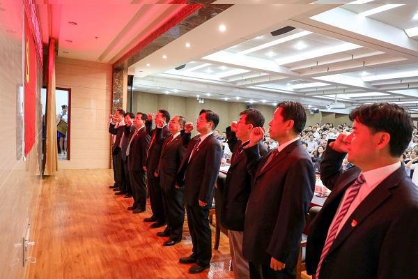 大会在雄壮的《国歌》声中拉开帷幕。随后,全体与会党员重温了入党誓词。