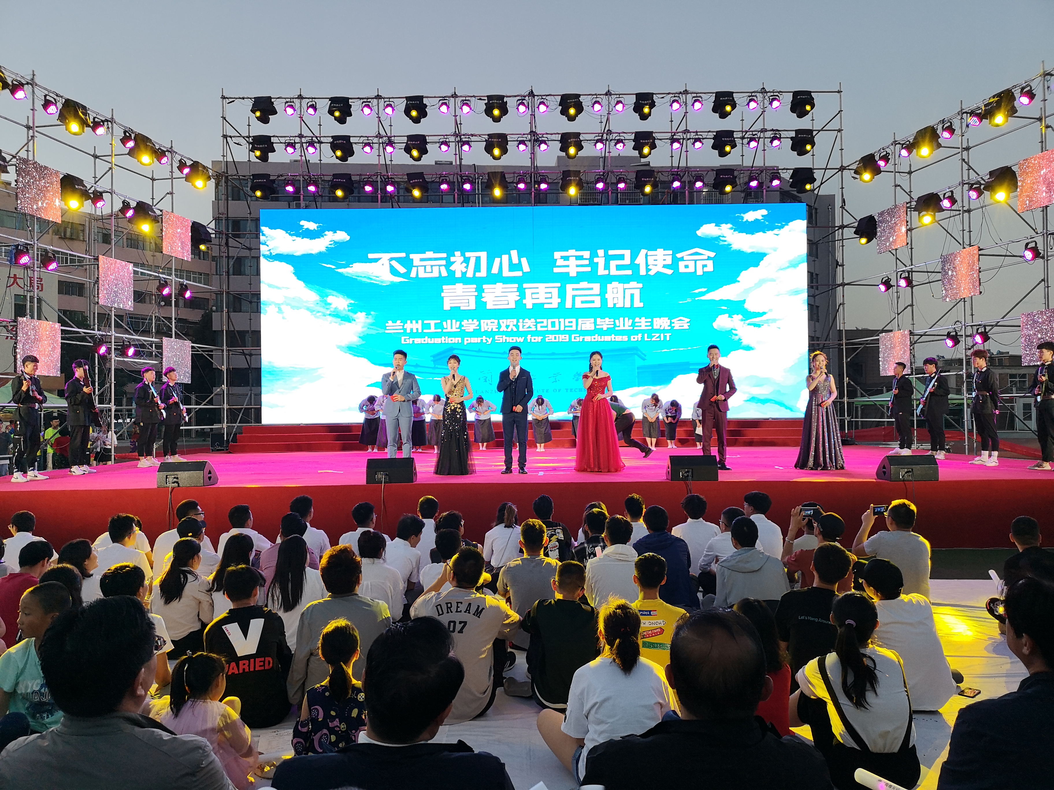 6月27日至29日,2019年毕业季学校系列演出在南校区运动场精彩上演。此次系列演出分三个专场,分别是“不忘初心,牢记使命,青春再起航”欢送2019届毕业生晚会、“陪你走过一段青春”萨摩诃乐队专场、TOP劲舞协会街舞专场,三场演出精彩纷呈,吸引了全校近万名师生观看。 27日晚,“陪你走过一段青春”萨摩诃乐队专场精彩呈现。萨摩诃是我校第一支成熟的电声乐队,组建于2016年,近年来参与校内外演出十余场次,深受好评。演出当晚,乐队带来《我曾》《慢慢《归来》《煎饼侠》等12首脍炙人口的经典摇滚歌曲,现场荧光闪烁,气氛热烈。 28日晚,学校“不忘初心,牢记使命,青春再起航”欢送2019届毕业生晚会在舞狮表演《祥狮献瑞ž载誉远航》中拉开帷幕。校党委书记俞子泓、校长王华栋、党委副书记黄荟铭、纪委书记廉志端、副校长陈文贤、马铁信、李贵山、总会计师王多兴、校长助理雷在福等学校领导与学校近三千名师生共同观看演出。演出主要以独唱、合唱、舞蹈、相声、情景朗诵等形式进行,表达了学校对毕业生的浓浓情意和衷心祝愿。舞蹈《新青年》、《当那一天来临》展现了我校学子秉承以爱国主义为核心的民族精神,展现了青年学子积极向上的精神风貌。古典舞《思美人兮》、歌伴舞《不染》在唯美画面中再现了诗词歌赋之美。合唱《贝加尔湖畔》、《我爱你中国》用婉转动听的音律献礼新中国成立70周年。情景朗诵《工院,我们一起走过》、歌曲联唱《青春的印迹》、情景朗诵《再见六月》生动再现了多姿多彩的校园生活,表达了毕业生对学校的依依不舍之情。2019届毕业生庄严宣誓:“青春见证,梦想启航!”表达了工院学子传承校训、爱国奋进、奉献国家、追逐梦想的坚定信念。晚会互动环节,省级创新创业导师、“我最喜爱的教师”代表、“师德标兵”代表及毕业班辅导员、班主任代表深切寄语2019届毕业生,送上学校和老师对2019届毕业生的期许与祝福。随后毕业生代表向老师们献上鲜花,表达了对学校和老师的深深谢意!整场晚会用光影和音乐记录了2019届毕业生美好难忘的大学生活,体现了老师和同学们对毕业生的殷切期望和祝福。 29日晚,由我校TOP劲区街舞协会主办的第四届TPOP街舞专场演出成功举办。甘肃农业大学ONE曳步舞协会、甘肃政法大学大艺团V-ace街舞队以及兰州城市学院翎羽舞蹈协会等友情演出,精彩的breaking舞蹈、爵士舞、SHUFFLE舞蹈令在场观众目不暇接,舞者流畅的舞步伴以重鼓和轻拍交杂的舞曲,给人以强烈视觉冲击。 2019年毕业季系列演出,内容丰富精彩、高潮迭起不断,堪称视觉和听觉的盛宴。整个系列演出展现了工院学子对母校的深切眷恋与不舍,饱含浓厚的师生情、同窗情。表达了学校对2019届毕业生的真诚祝福,为师生搭建了一个欣赏艺术、提升素养、感受文化的平台,为营造和谐校园氛围,提升校园文化品位发挥了积极作用。